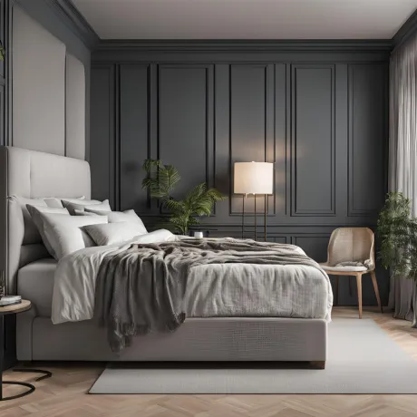 ✔️ Ciemne kolory (grafit, butelkowa zieleń, granat, czerń, brąz) ✅ Dodają elegancji i luksusowego wyglądu. ✅ Świetnie komponują się z metalowymi i złotymi dodatkami. ✅ Są idealne do większych sypialni, gdzie nie przytłoczą przestrzeni.