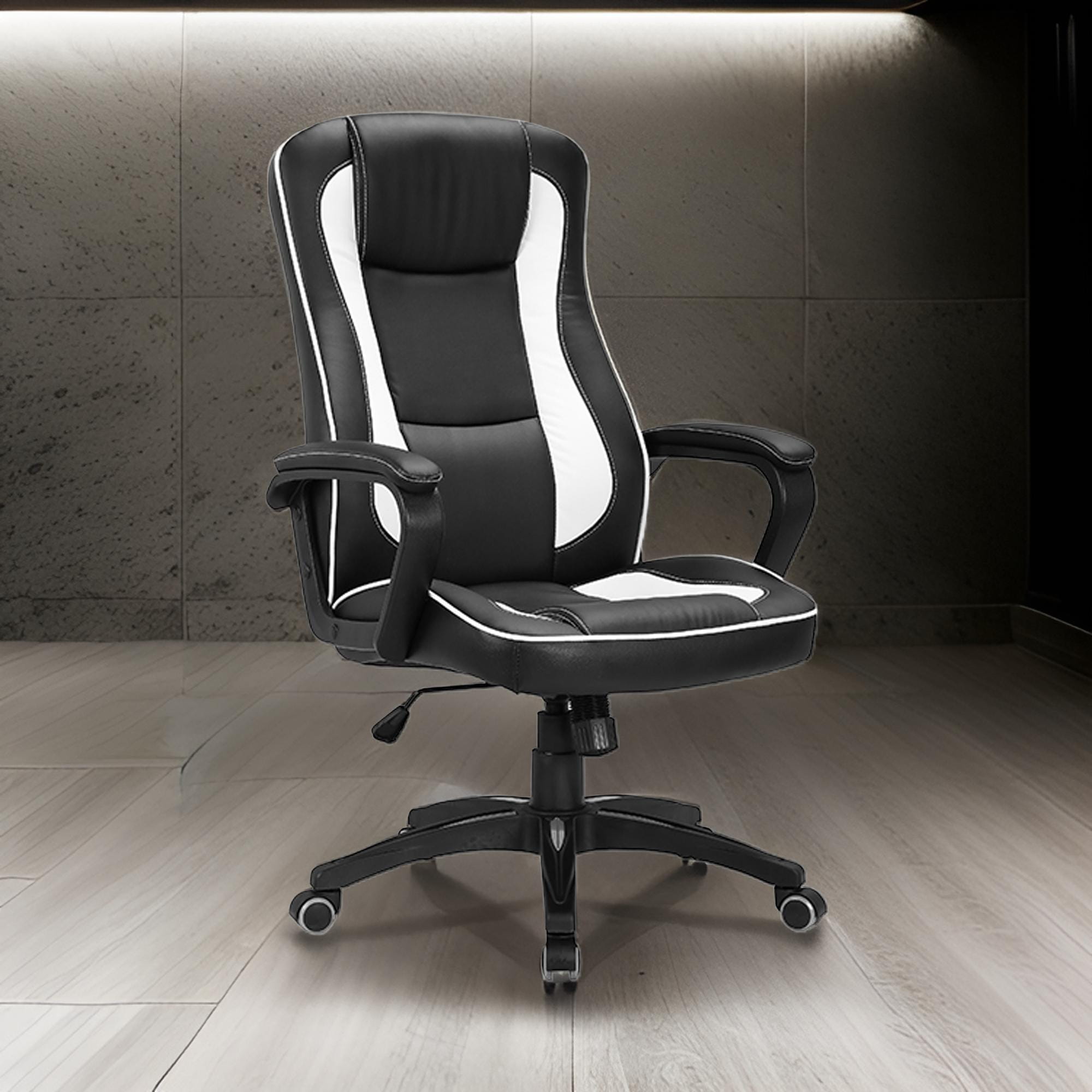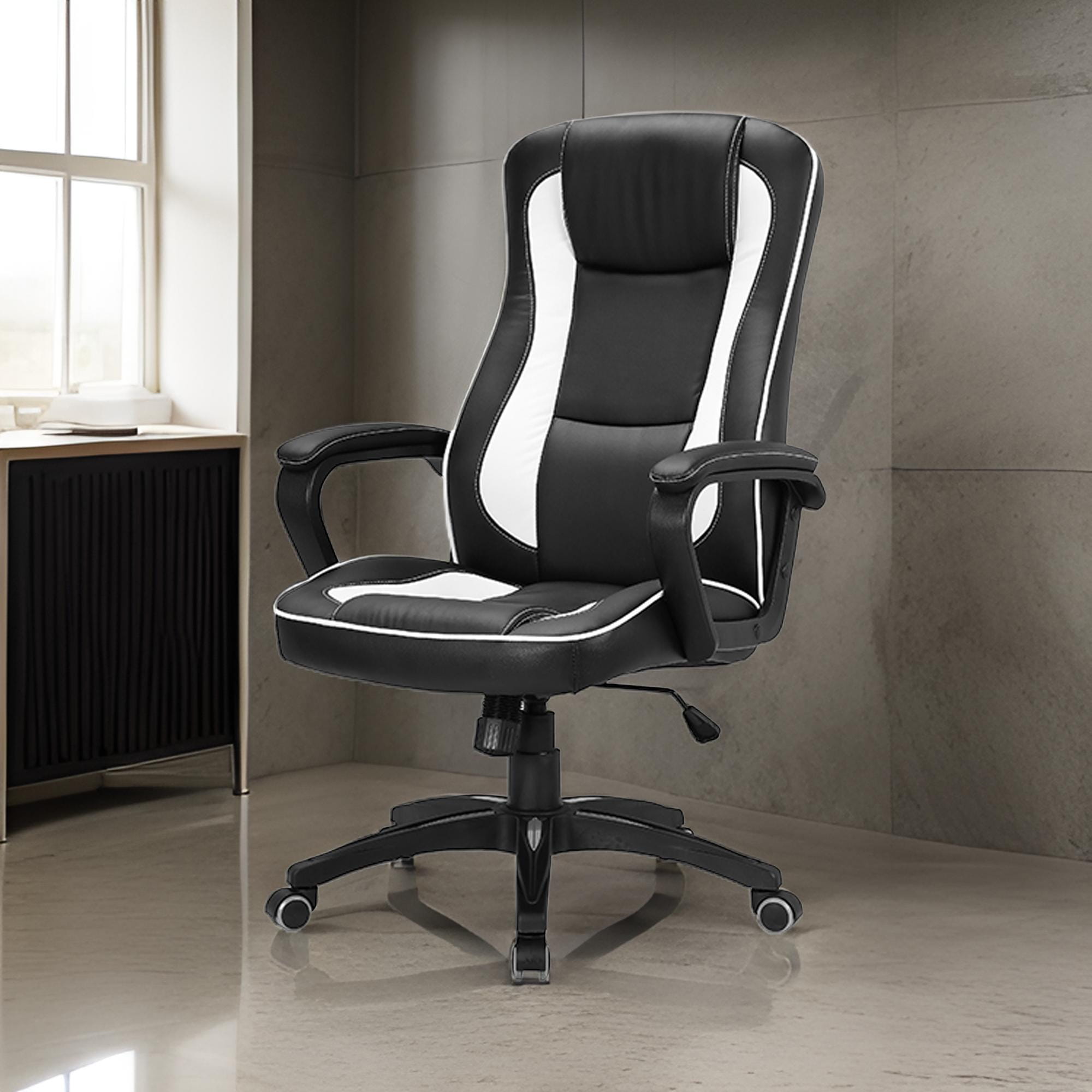 Fotel SEVORIN wyróżnia się nowoczesnym designem, który doskonale komponuje się z różnymi stylami biur, od nowoczesnych po klasyczne. Połączenie czarnej eko skóry z białymi wstawkami nadaje mu elegancki i profesjonalny wygląd, który idealnie wpasowuje się w każde biurowe wnętrze. Chromowane nogi dodają mu nowoczesnego charakteru i zapewniają solidność konstrukcji, gwarantując trwałość i długowieczność mebla.