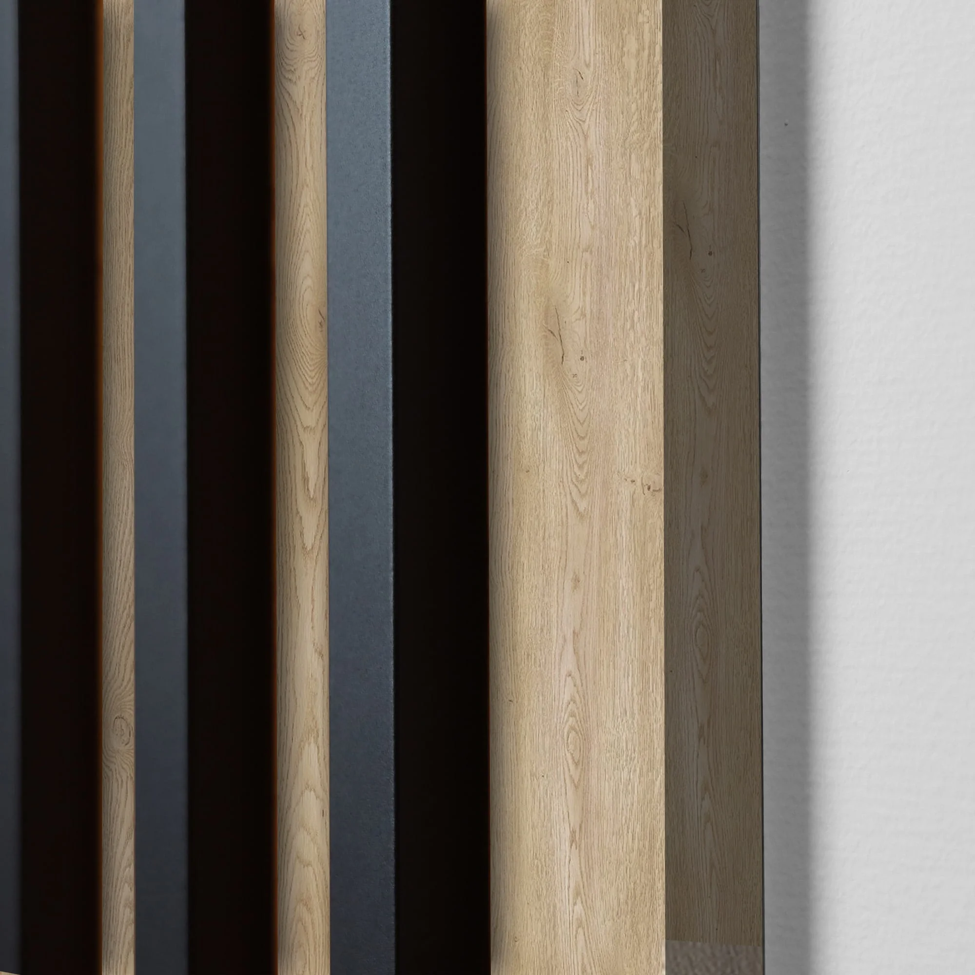 Front wysoki z lamelami szafy modułowej AGATA 37,5x236 cm dąb cremona / lamele czarne - wąski (L)
