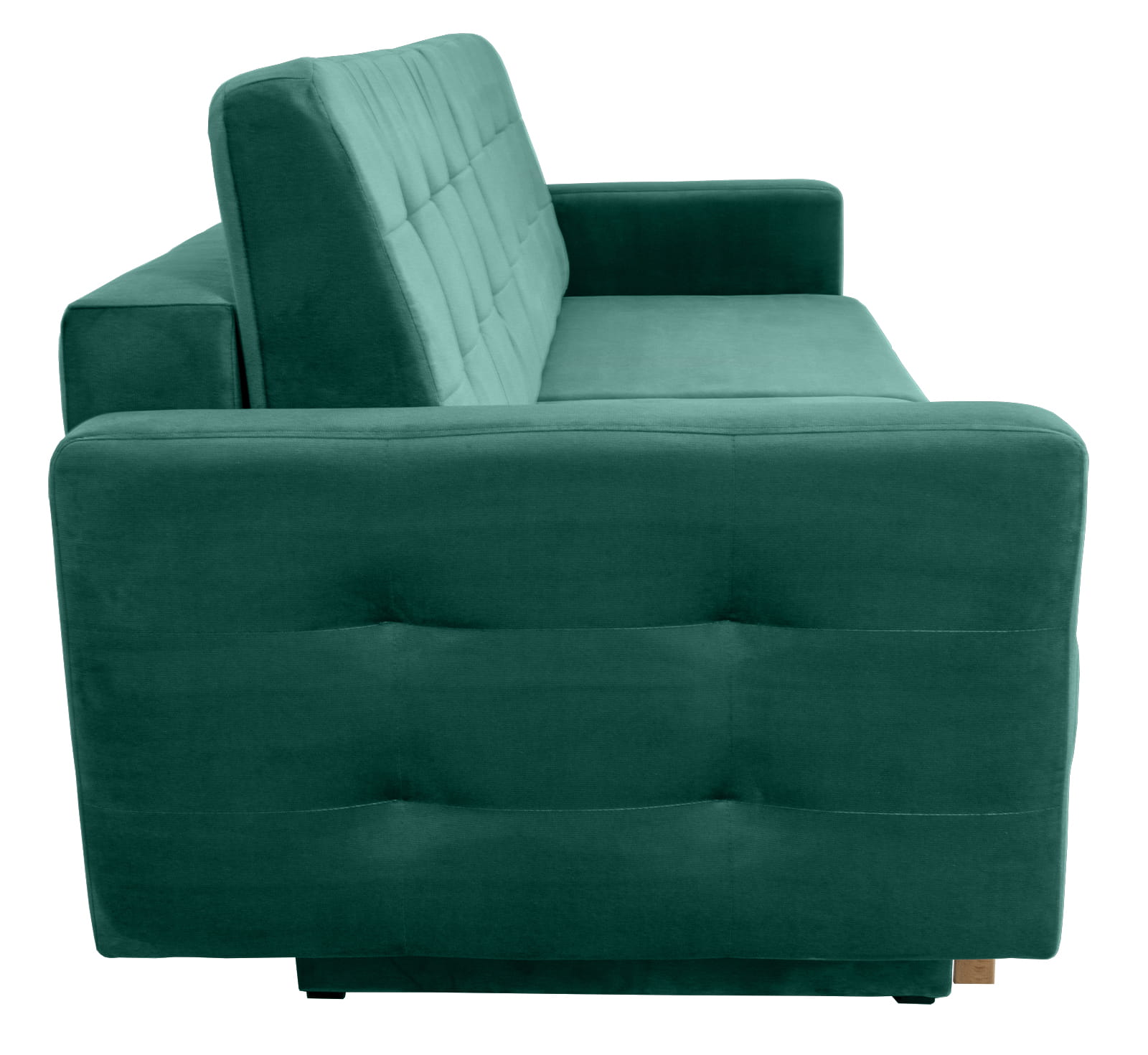 Kanapa umieszczona na drewnianych bukowych podwyższonych nóżkach, dzięki czemu jej forma jest niezwykle lekka i subtelna. Przeszycia nadające delikatne pikowanie są efektowne i modne. Siedzisko i oparcia to komfort i wygoda, konstrukcja sprężyn falistej i bonellowej z pianką wysoko elastyczną świadczy o wysokiej jakości. Kanapa posiada pojemnik na pościel mieszczący niezbędne tekstylia. Funkcja spania posiada optymalna powierzchnię użytkowania. Kanapa idealna do pokojów dziennych, salonów czy pokojów młodzieżowych. Design idealnie wpisze się w aranżacje stylu skandynawskiego, romantycznego i w klasykę. W modnym odcieniu mięty, który zrobi wrażenie na Twoich gościach.