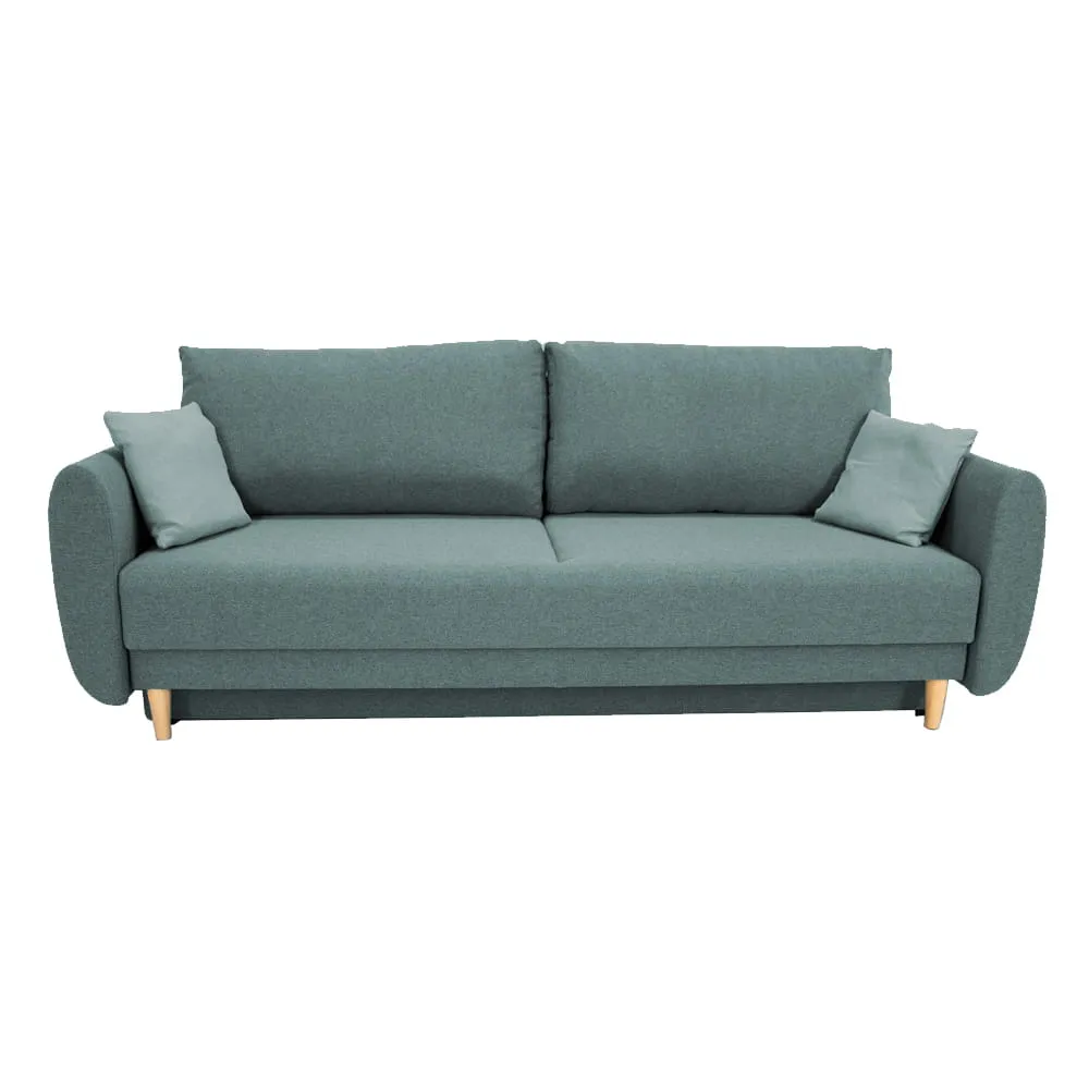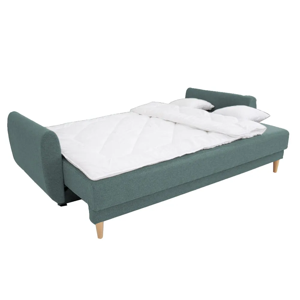 Kanapa jest wyposażona w duży pojemnik, który bez problemu pomieści komplet pościeli.