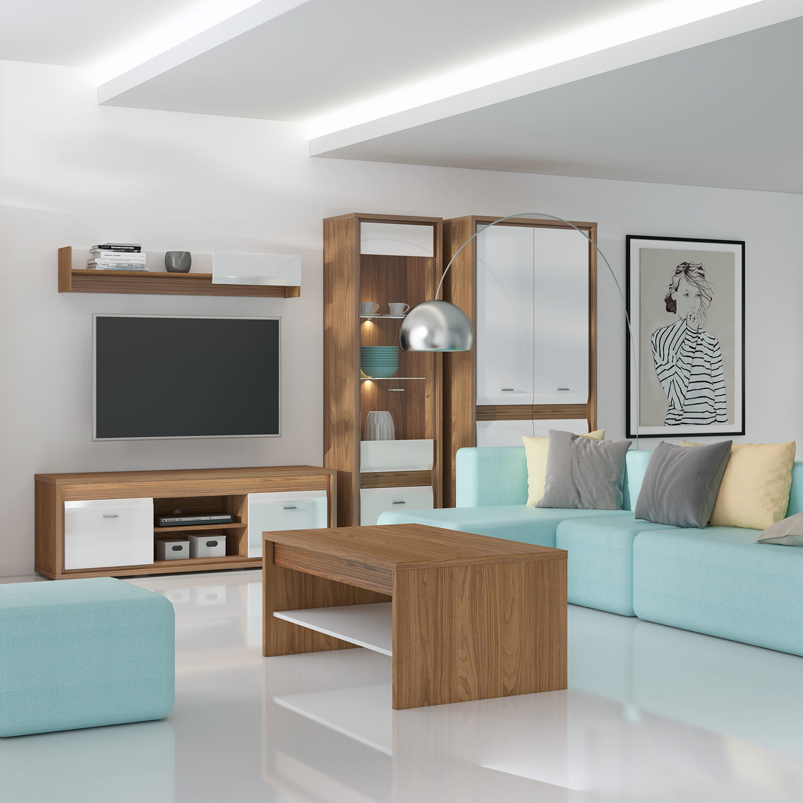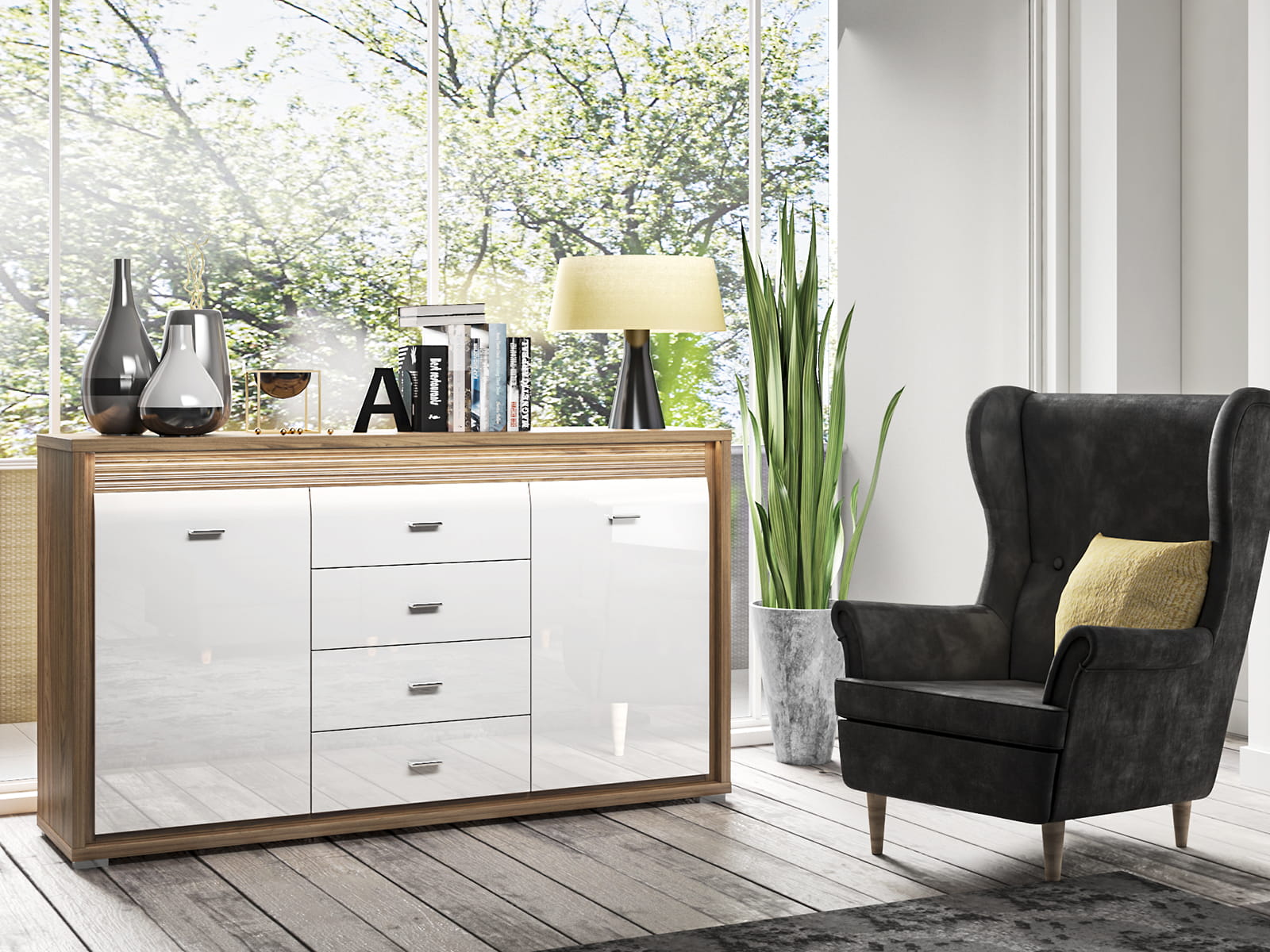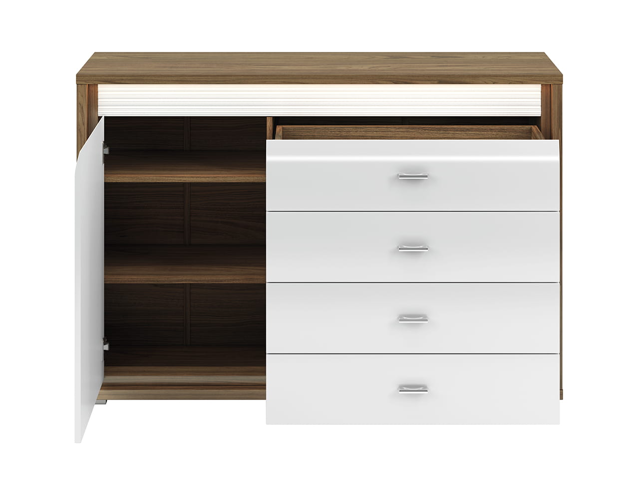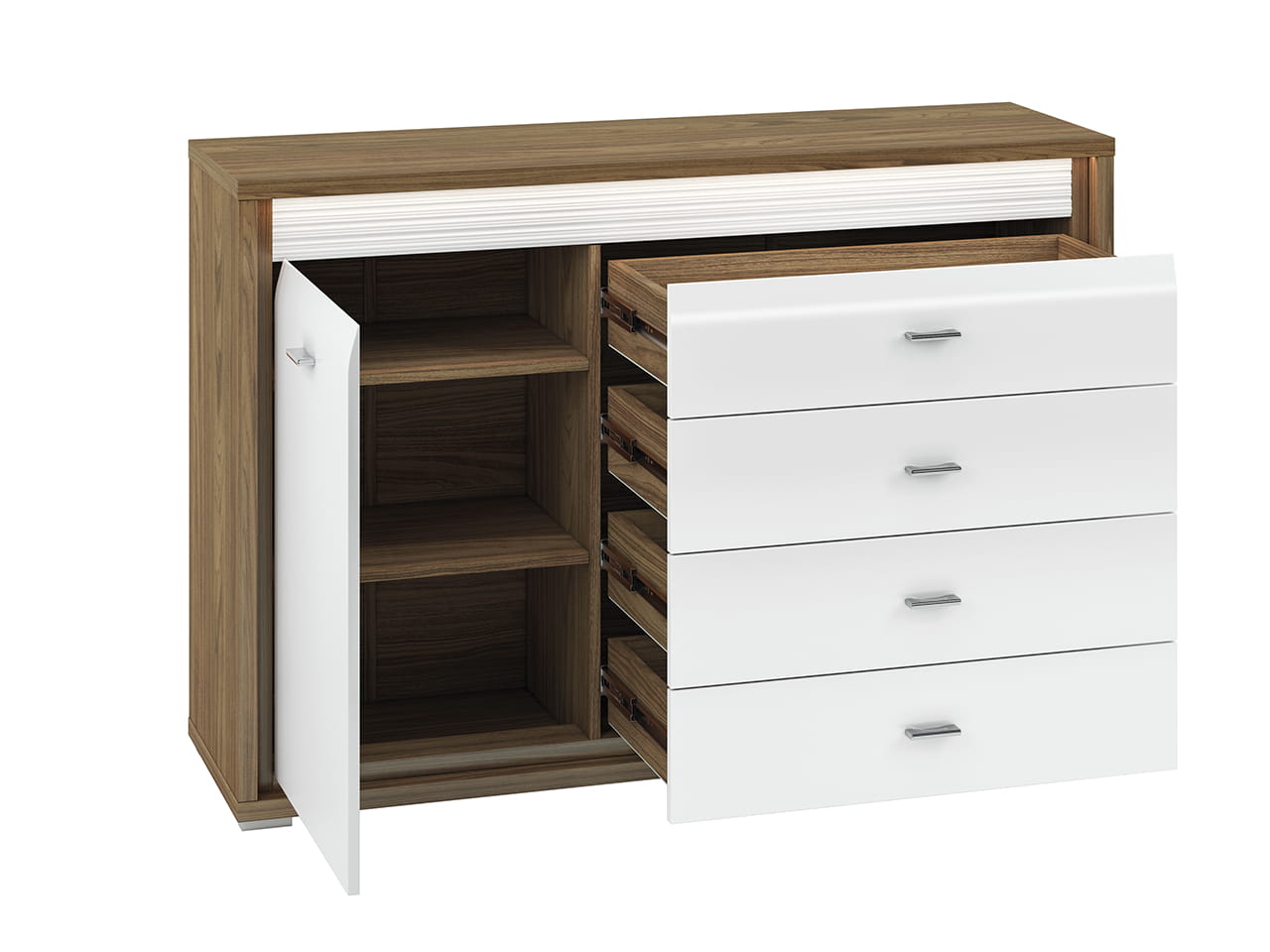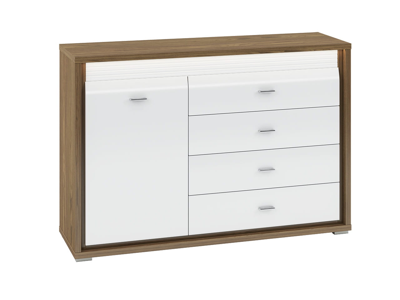 Komoda MIRANDA 1D4S orzech / biały połysk 138 cm