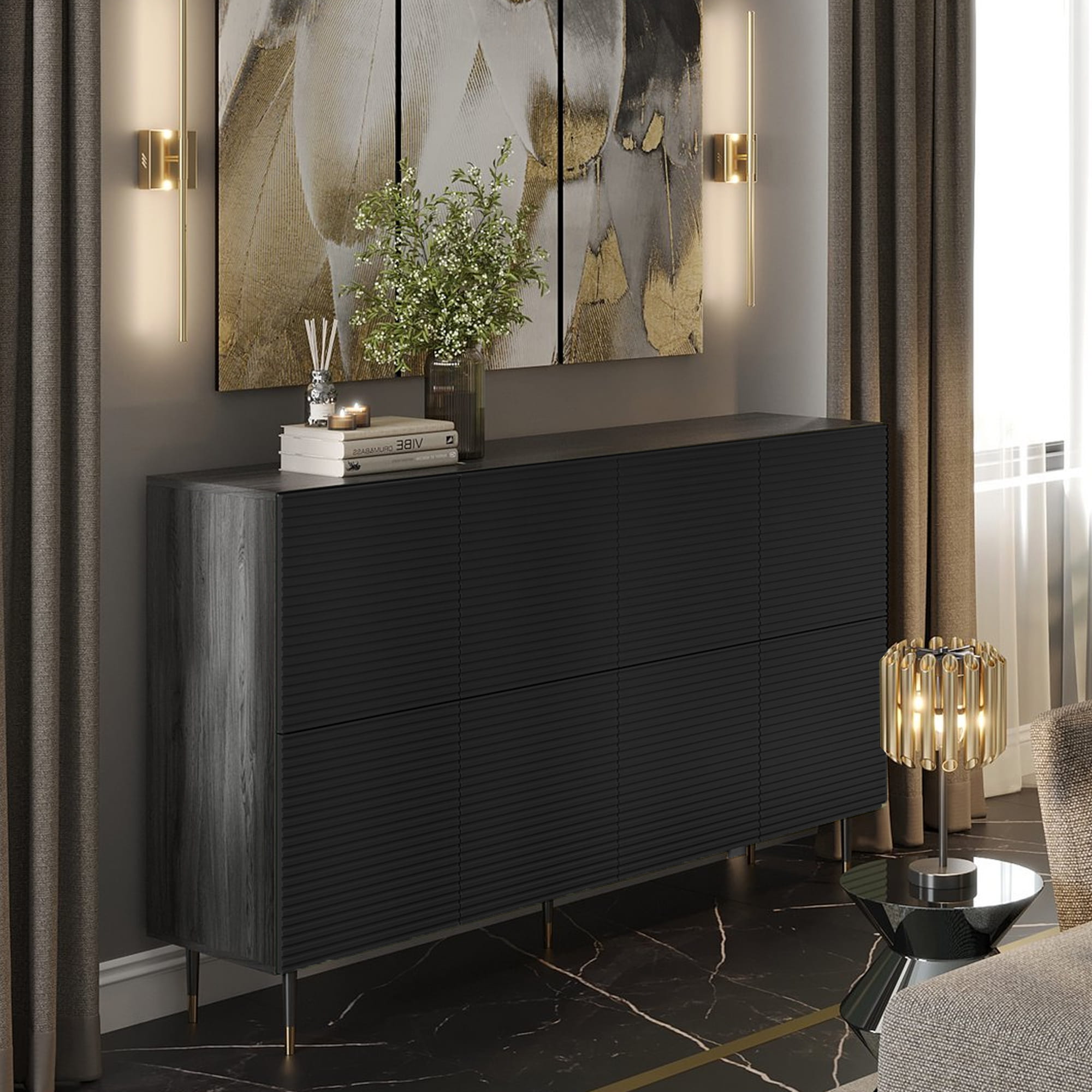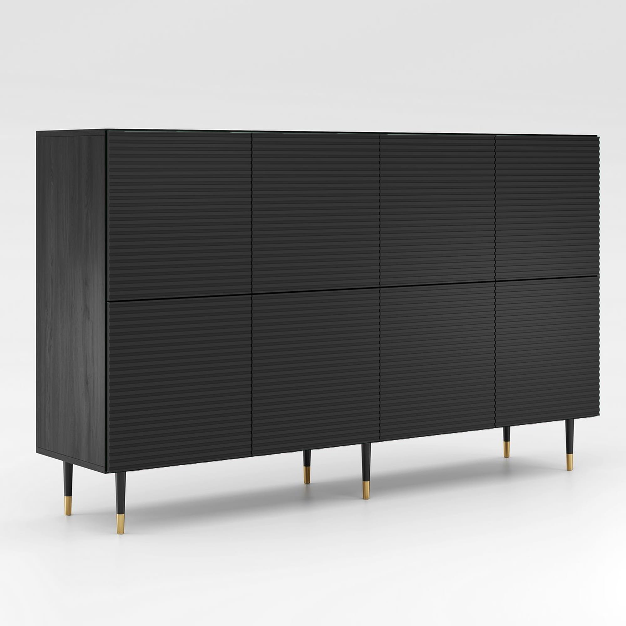 Komoda MIXTURIAL ośmiodrzwiowa 180 cm - czarne ryflowane fronty, nogi złote