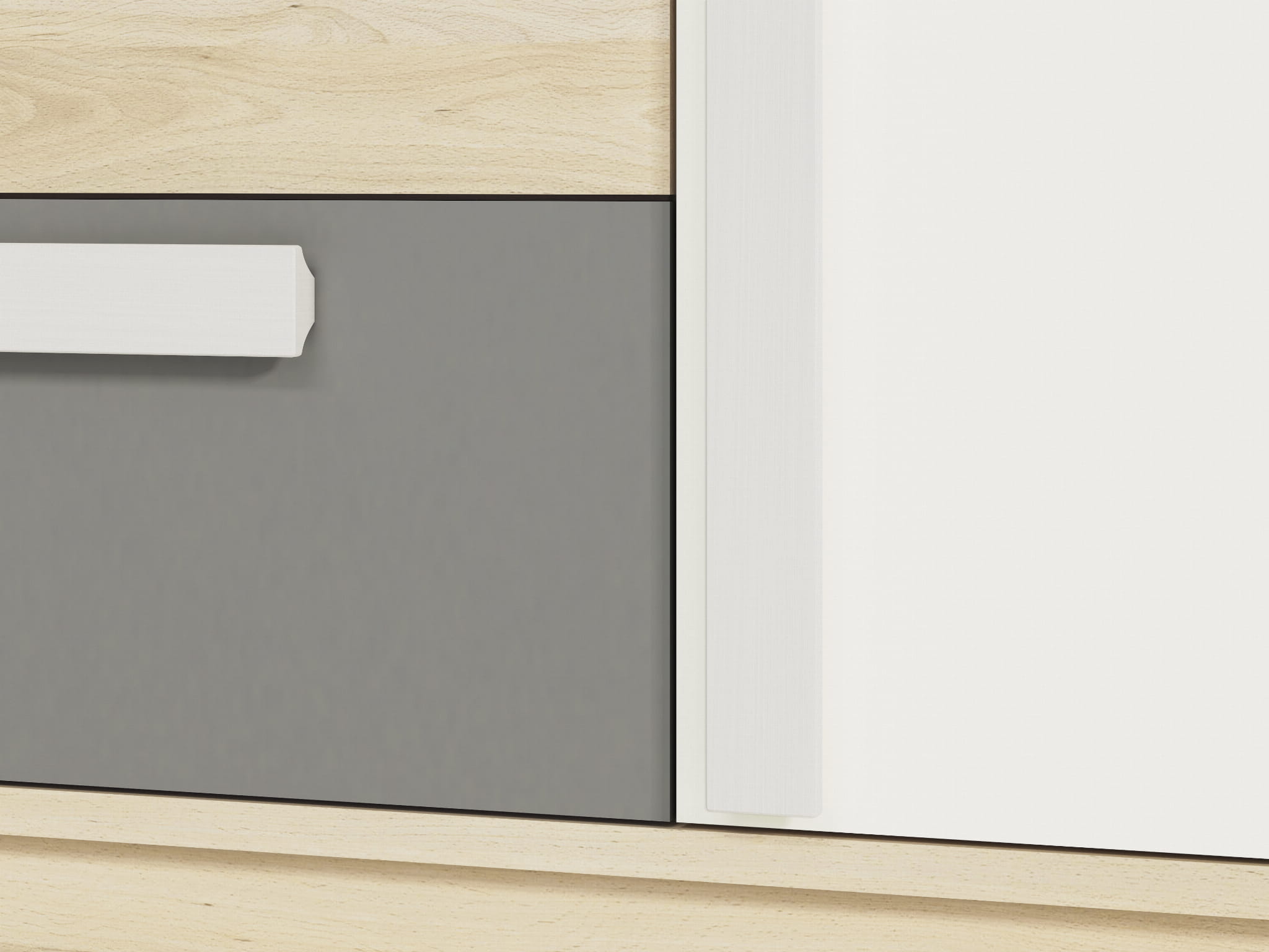 Komoda jednodrzwiowa z trzema szufladami NORDO Buk Fjord+Biały szara platyna