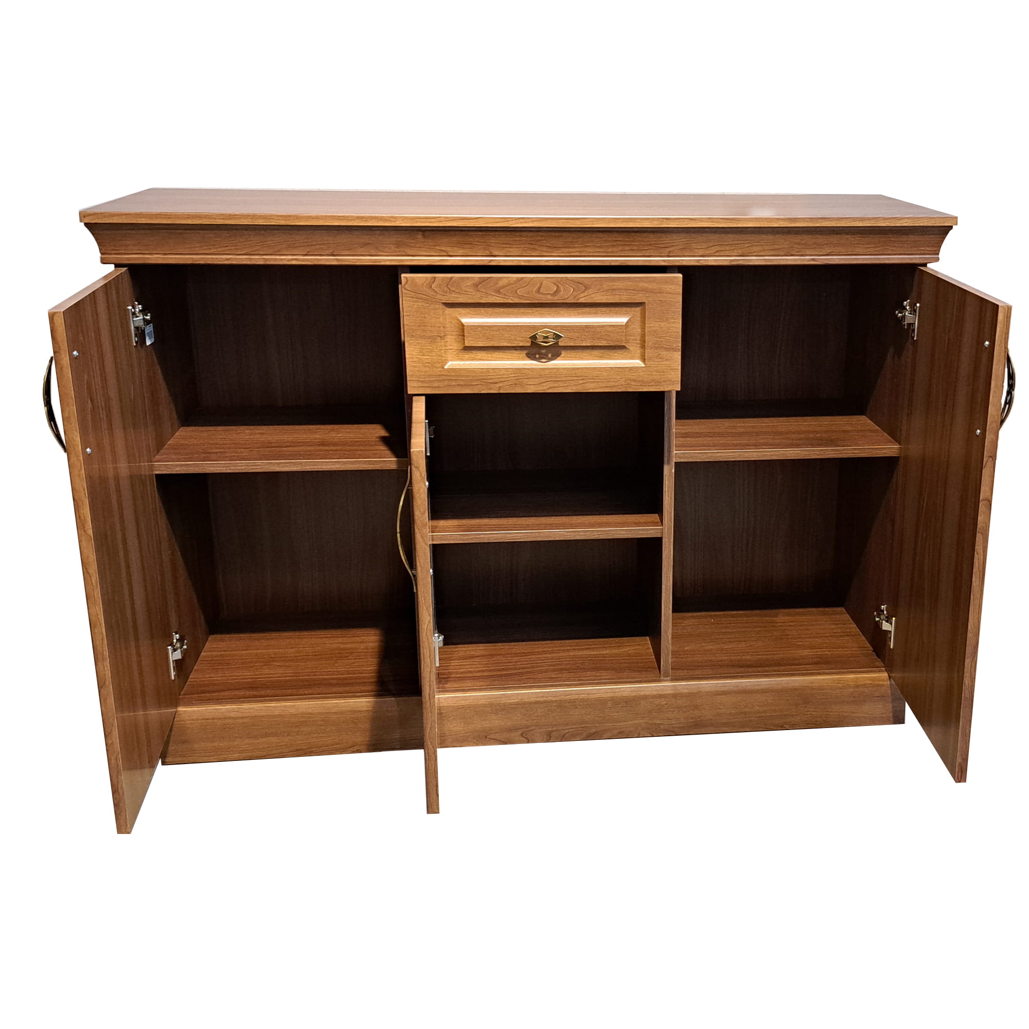 Trzydrzwiowy układ komody zapewnia dużo miejsca na przechowywanie ubrań, akcesoriów, dokumentów czy innych niezbędnych przedmiotów. Stylowe zdobienia i precyzyjne wykończenie sprawiają, że komoda MATADOR jest nie tylko funkcjonalnym, ale również estetycznym elementem wyposażenia.