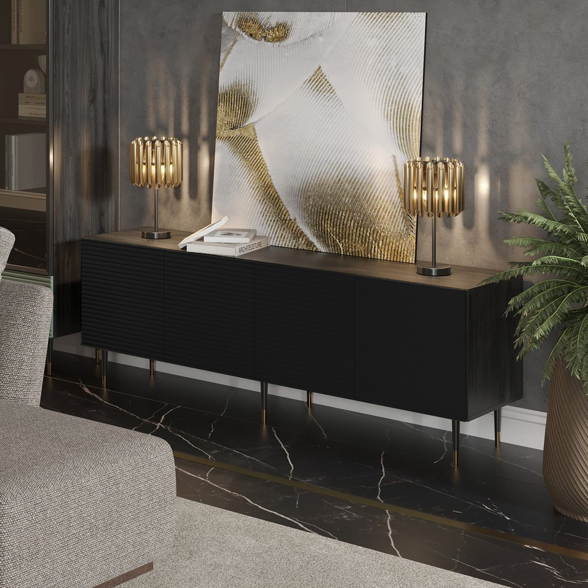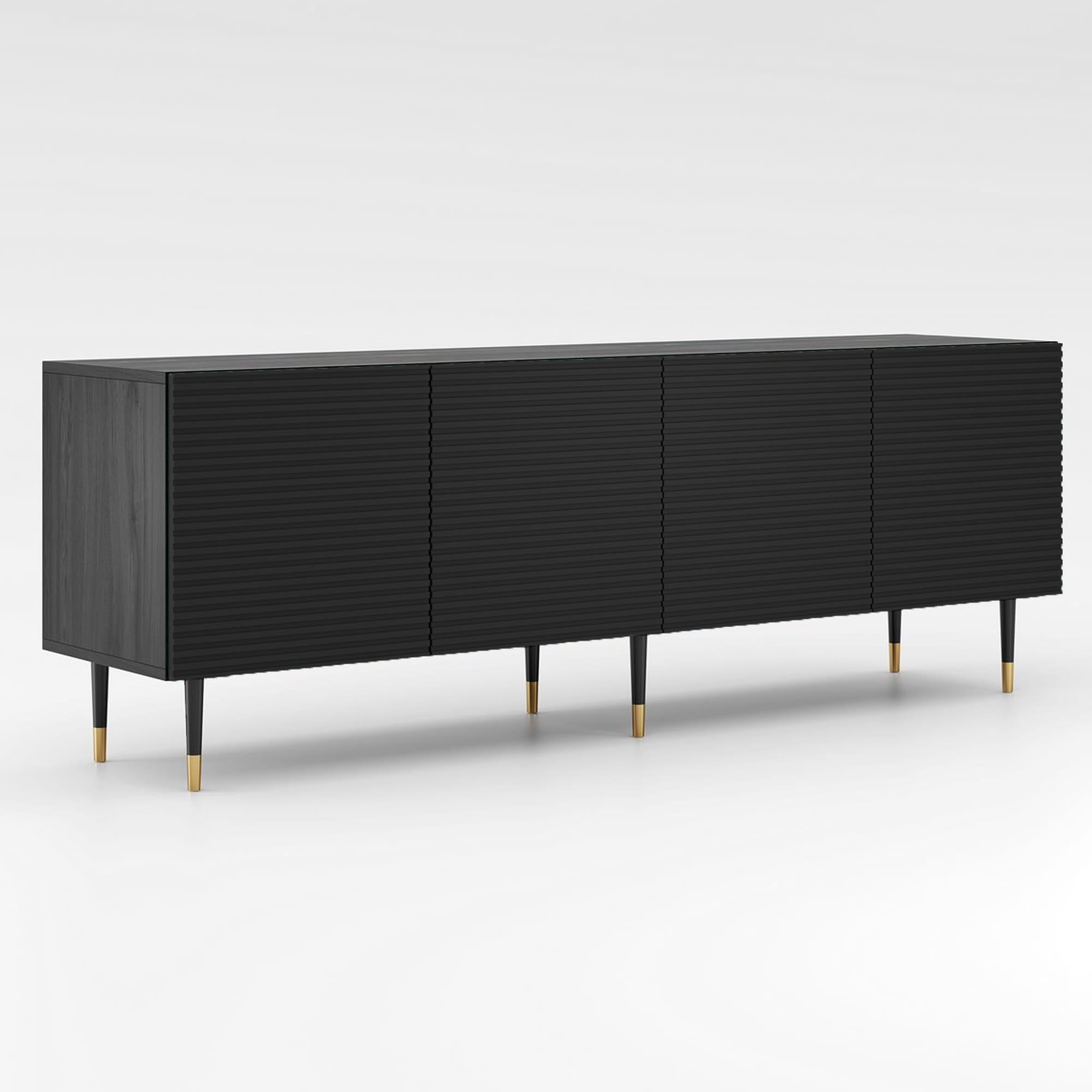 Komoda ryflowana MIXTURIAL czterodrzwiowa 180 cm - czarna, nogi złote