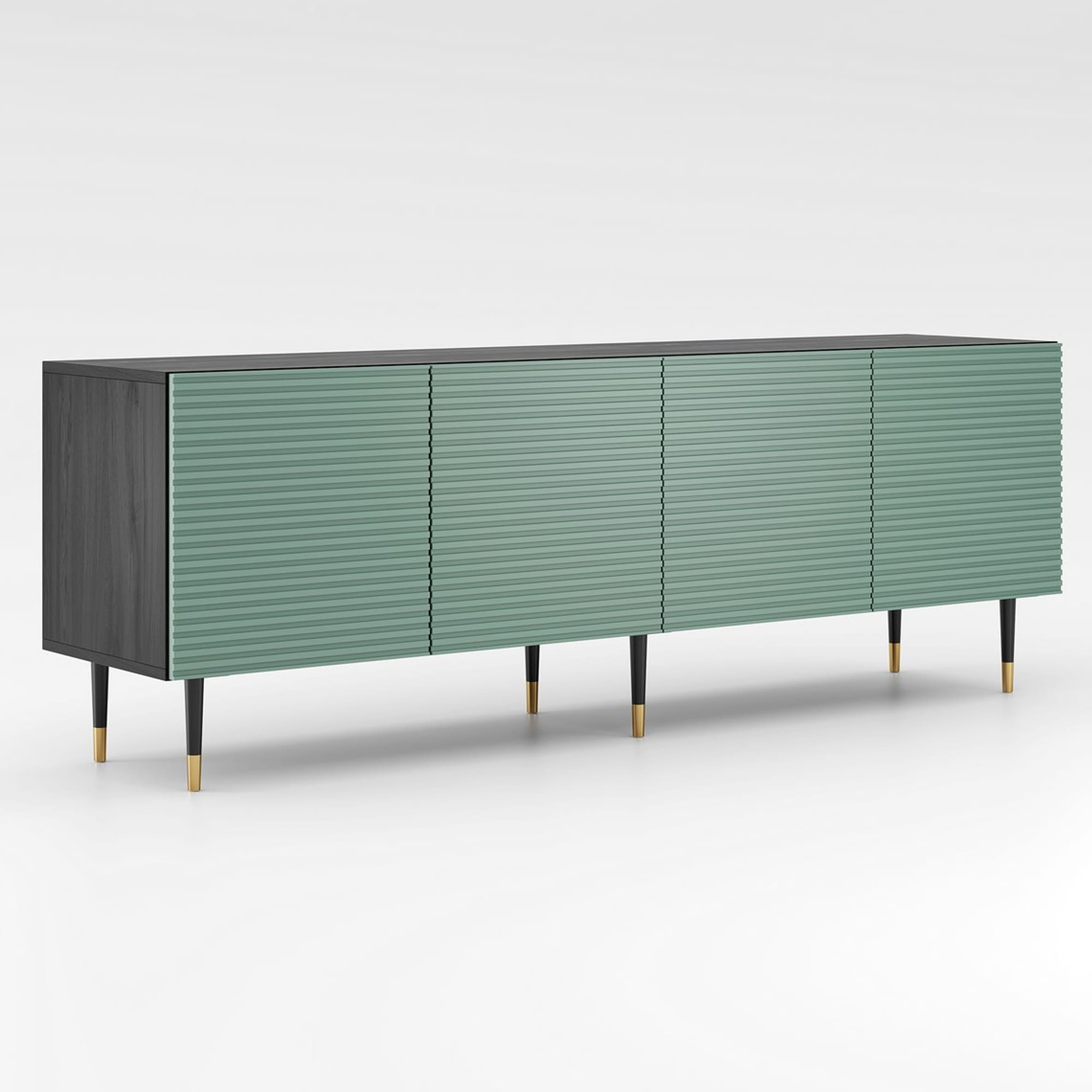 Komoda ryflowana MIXTURIAL czterodrzwiowa 180 cm - czarna, pistacjowa zieleń, nogi złote