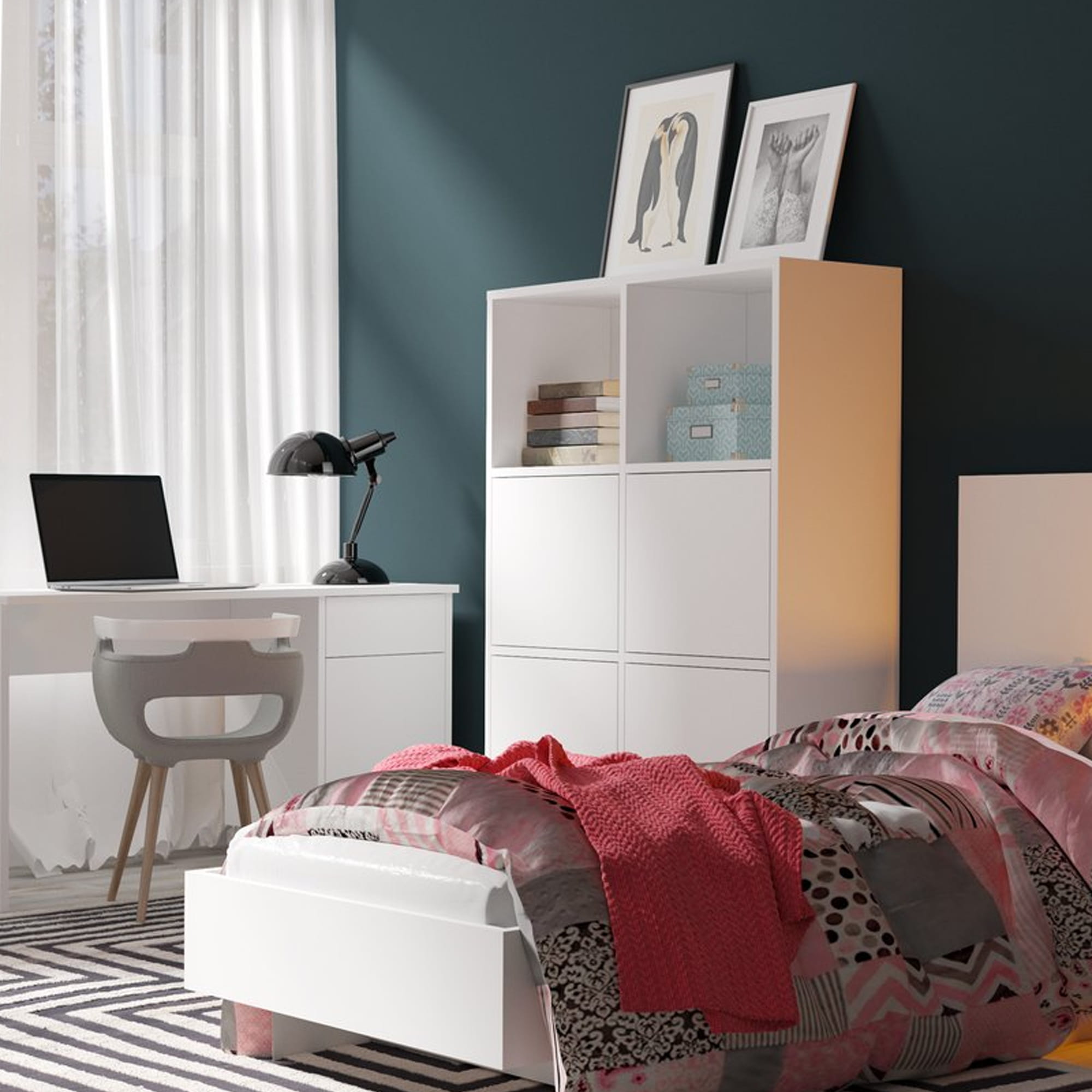 Komoda z regałami MUMO 4-drzwiowa – biały kolor