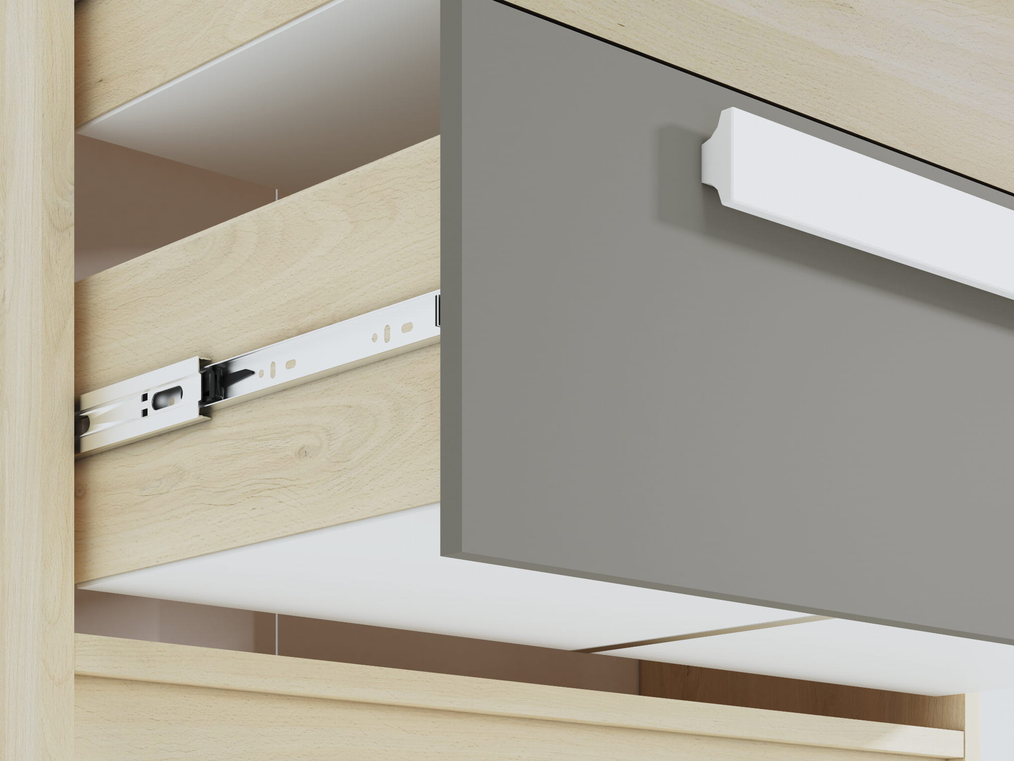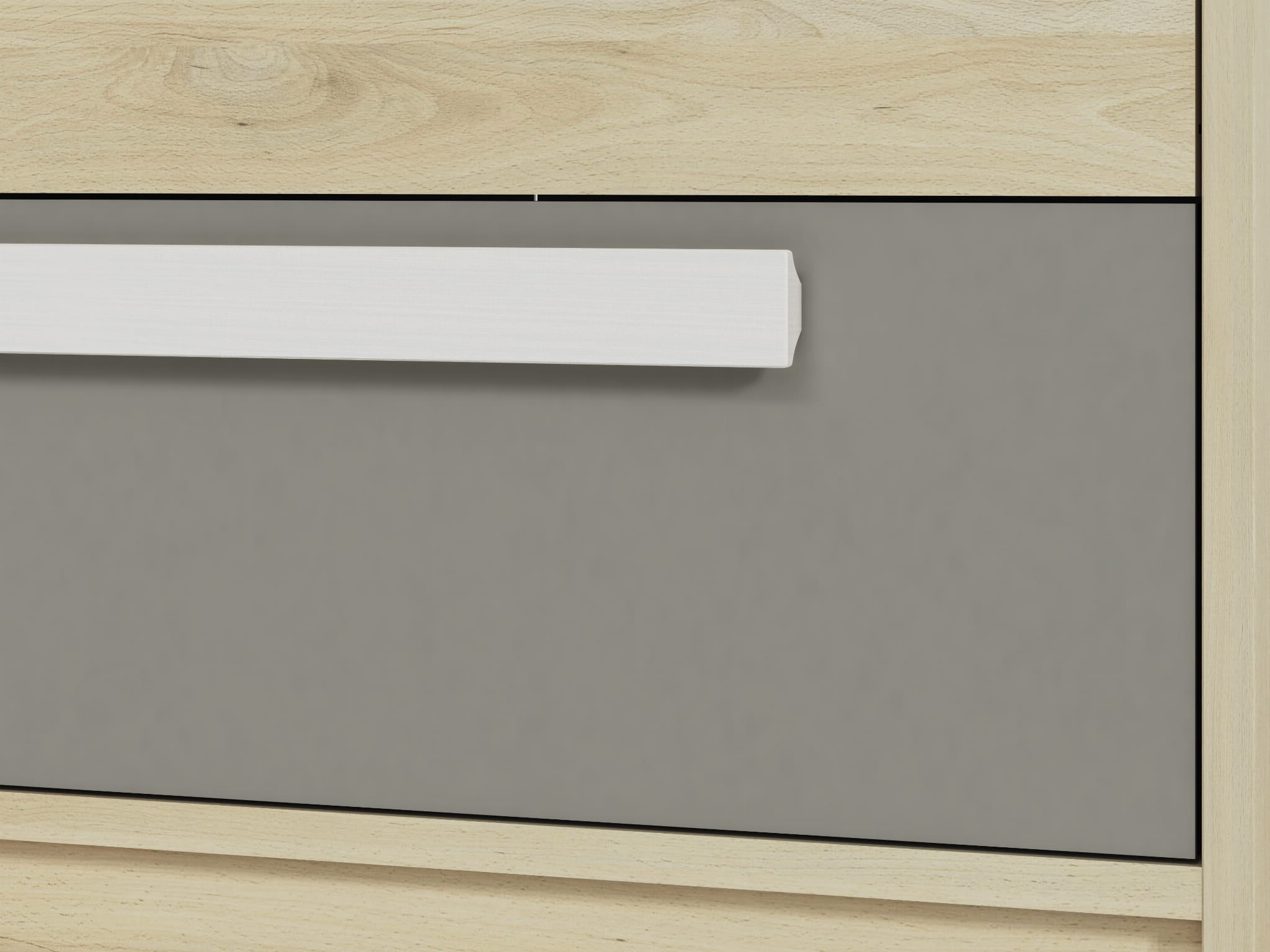 Głęboka komoda bukowa Fjord Nordo to połączenie wysokiej funkcjonalności z nowoczesnym designem. Piękny dębowy kolor konstrukcji oraz jednego z trzech frontów fantastycznie komponuje się z bielą oraz odcieniami szarości. To sprawia, że bukowa komoda Fjord Nordo doskonale sprawdzi się zarówno w sypialni czy salonie, jak i w pokoju młodzieżowym, a nawet w przedpokoju. Efektowny wygląd tego mebla znakomicie wpisze się w aranżacje klasyczne, nowoczesne oraz minimalistyczne. Trzy pojemne szuflady umożliwiają przechowywanie niezbędnych ubrań oraz innych przedmiotów codziennego użytku. Szerokie, podłużne uchwyty zapewniają łatwy dostęp do wnętrza szuflad. Aby stworzyć pełny zestaw do pokoju dziennego lub młodzieżowego, wystarczy skorzystać z oferty pozostałych mebli z tej imponującej kolekcji.