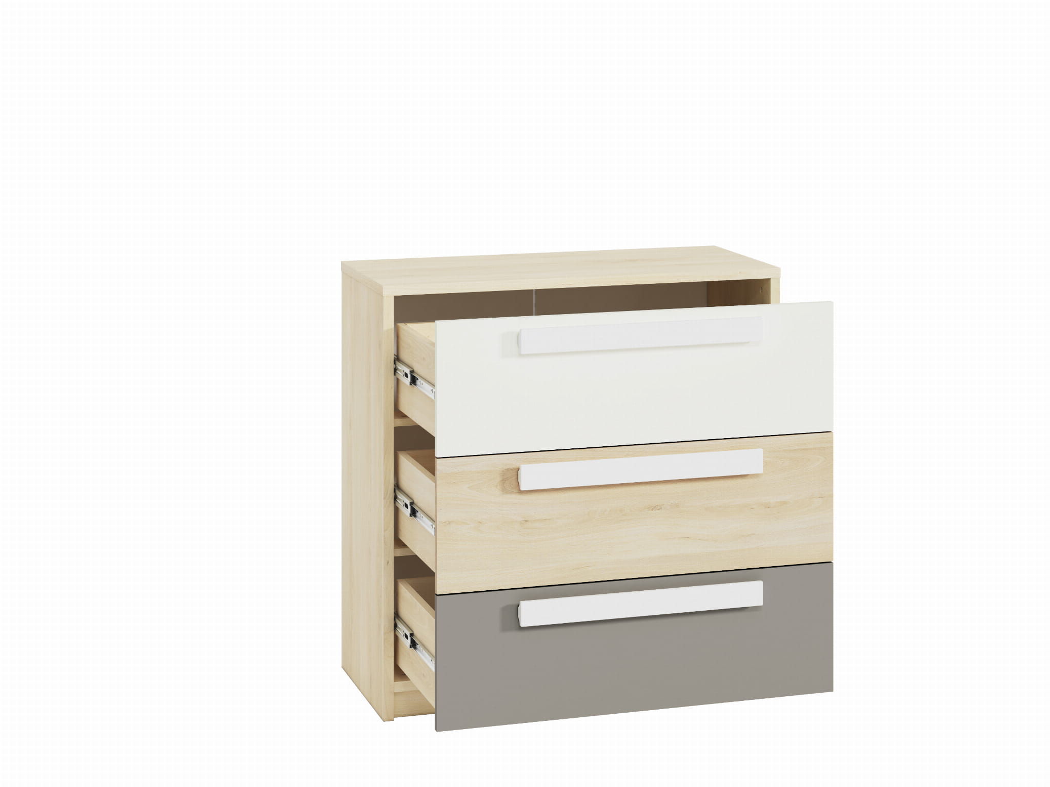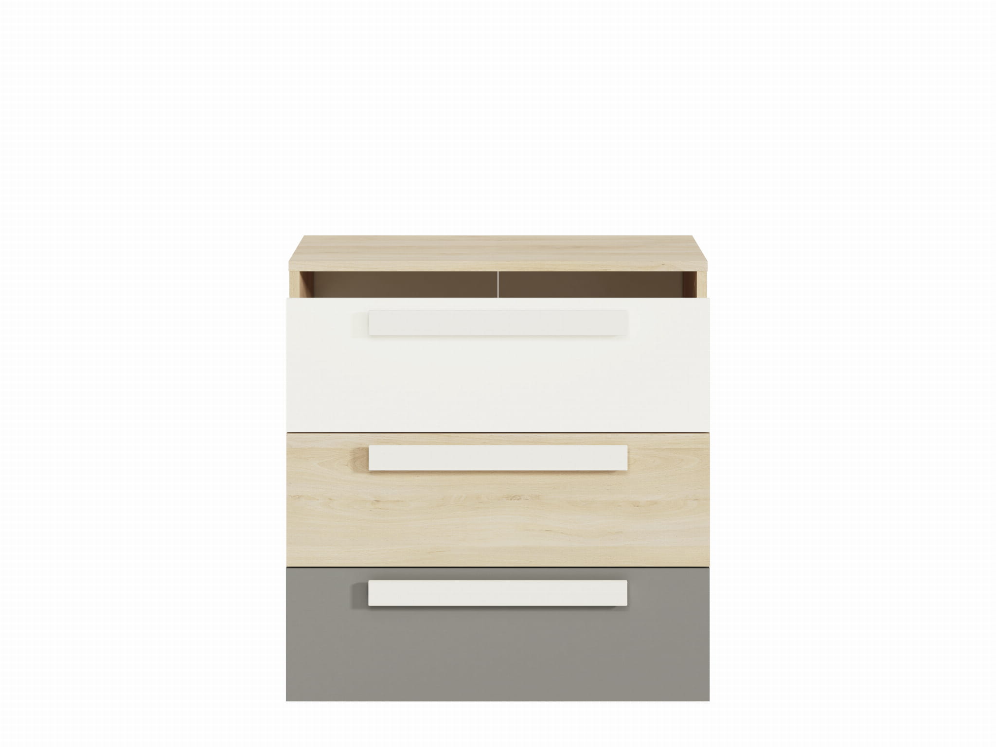 Komoda z trzema szufladami NORDO 92cm Buk Fjord+Biały szara platyna