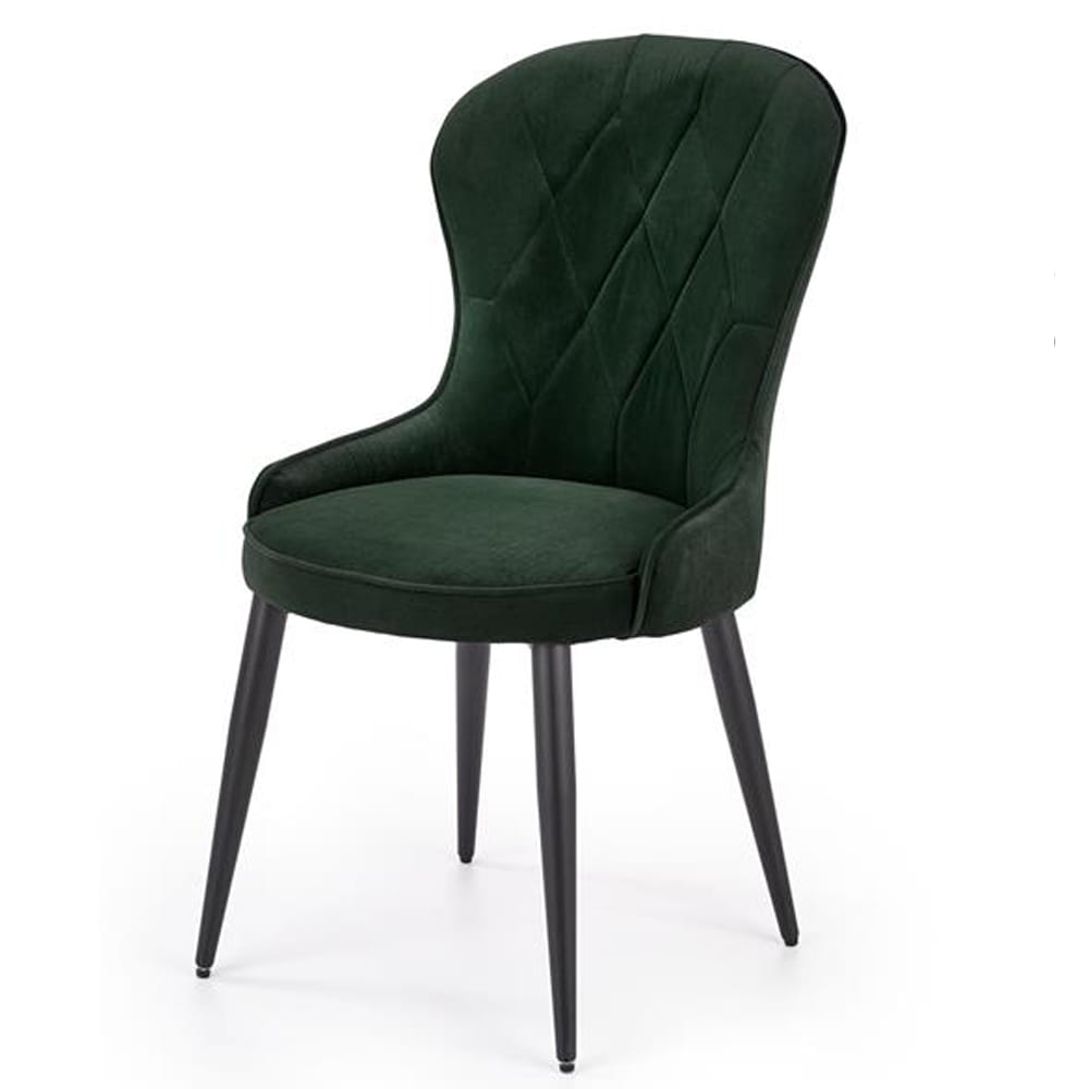 Krzesło do salonu pikowane welur butelkowa zieleń nogi czarne K366