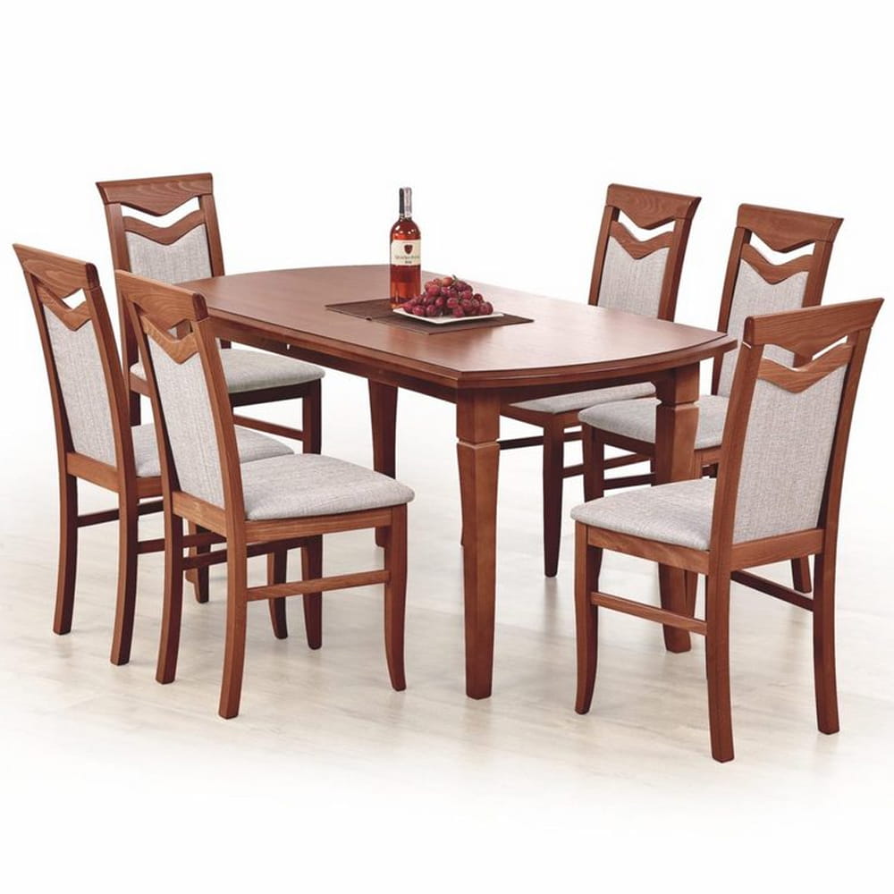 Krzesło do salonu tapicerowane beżowe drewniane czereśnia