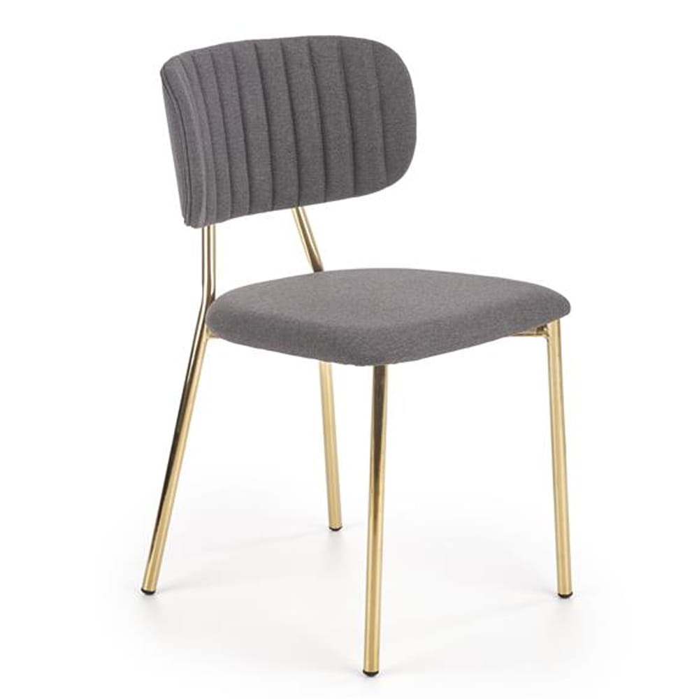 Krzesło do salonu tapicerowane ciemny szary nogi złote stal K362
