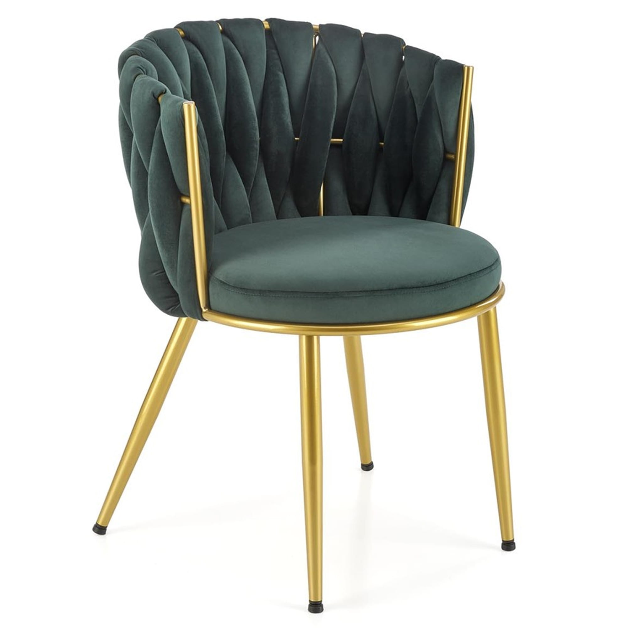 Krzesło tapicerowane HILARY pikowane ciemny zielony, nogi złote