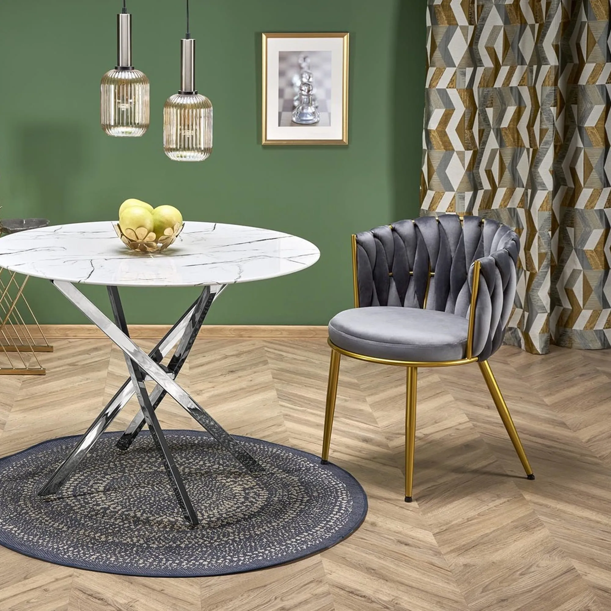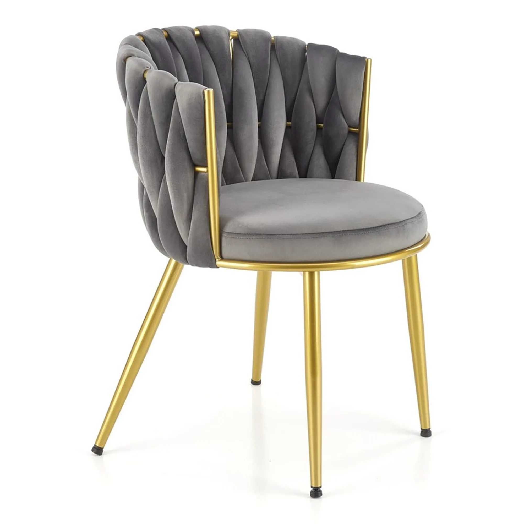 Krzesło tapicerowane HILARY pikowane popielaty, nogi złote