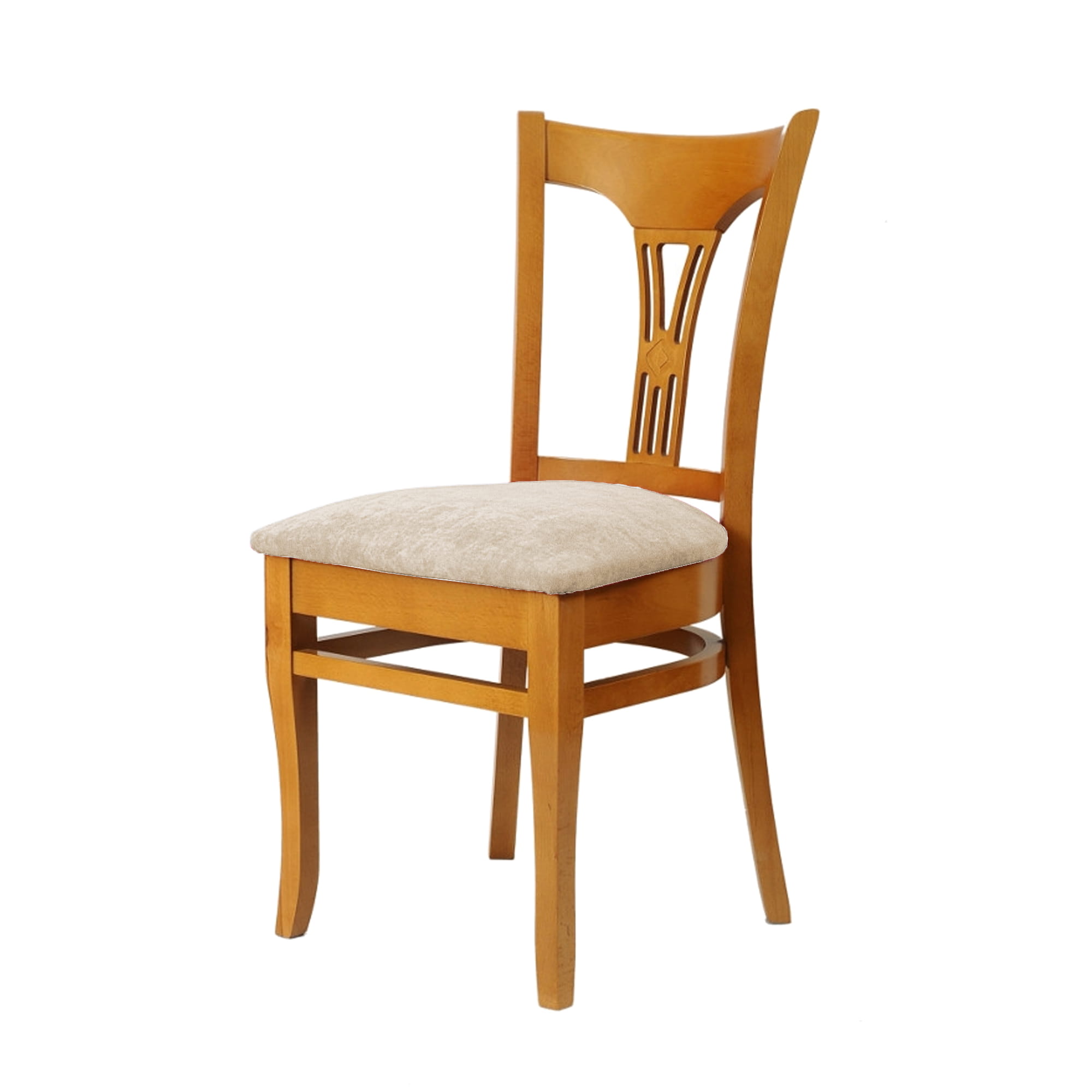 Krzesło na drewnianych, wykonanych z buku, lakierowanych w kolorze orzechowym nogach osadzone jest siedzisko z okalającym je oparciem. Całość jest bardzo wygodna i solidnie wykonana od nóg po wytrzymałą tapicerkę miłej w dotyku tkaniny.