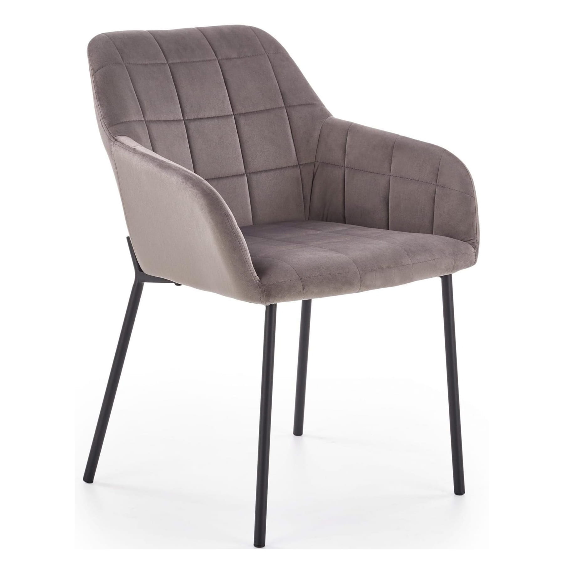 Krzesło K305 to krzesło bardzo nowoczesne i solidne. Konstrukcja opiera się na prostych nogach ze stali malowanej proszkowo w kolorze czarnym zaś oparcie zostało pokryte pikowanym popielatym welurem. Idealnie sprawdzi się przy stole w Twojej jadalni czy toaletce ponieważ krzesło swoim wyglądem jest doskonałym kompromisem pomiędzy tradycyjnym krzesłem, a nowoczesnym fotelem.