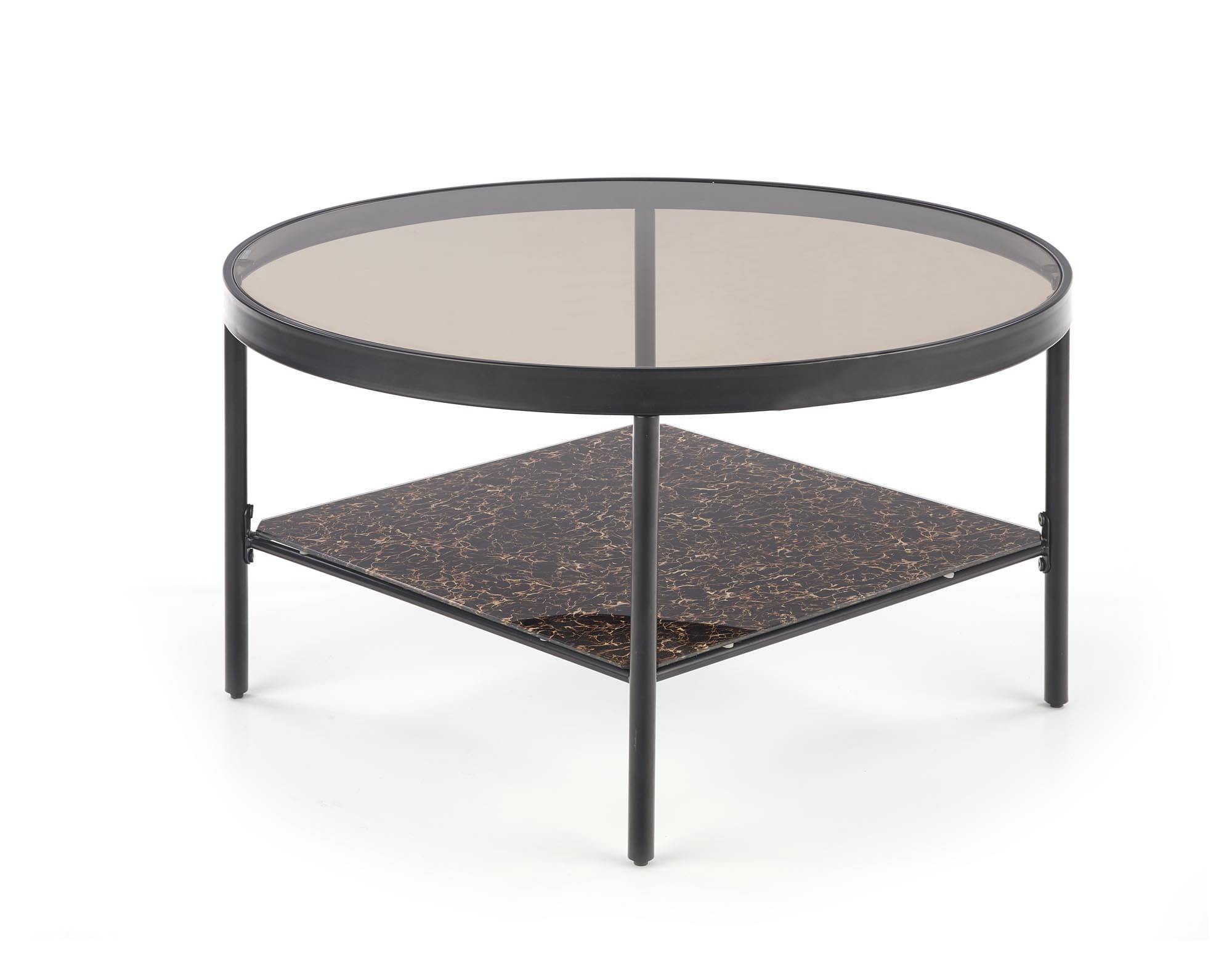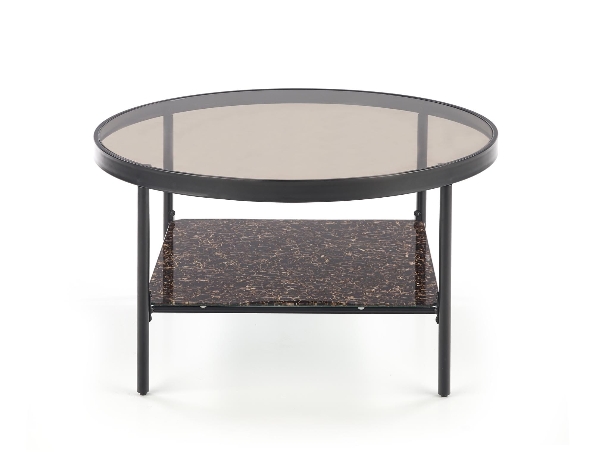 Ława okrągła czarna blat szklany czarny marmur 80cm WIZARD