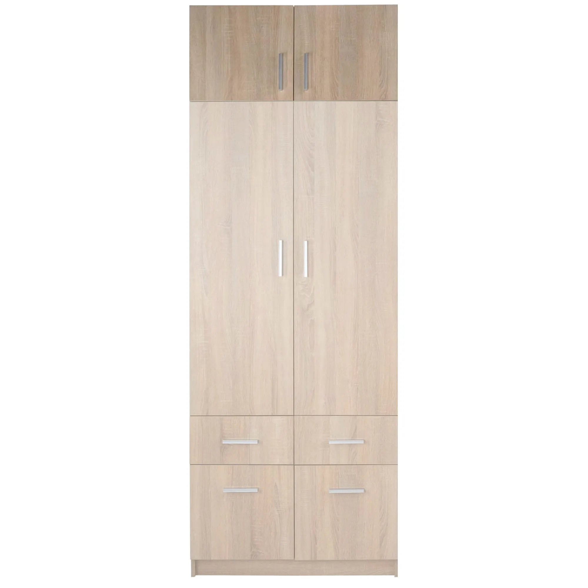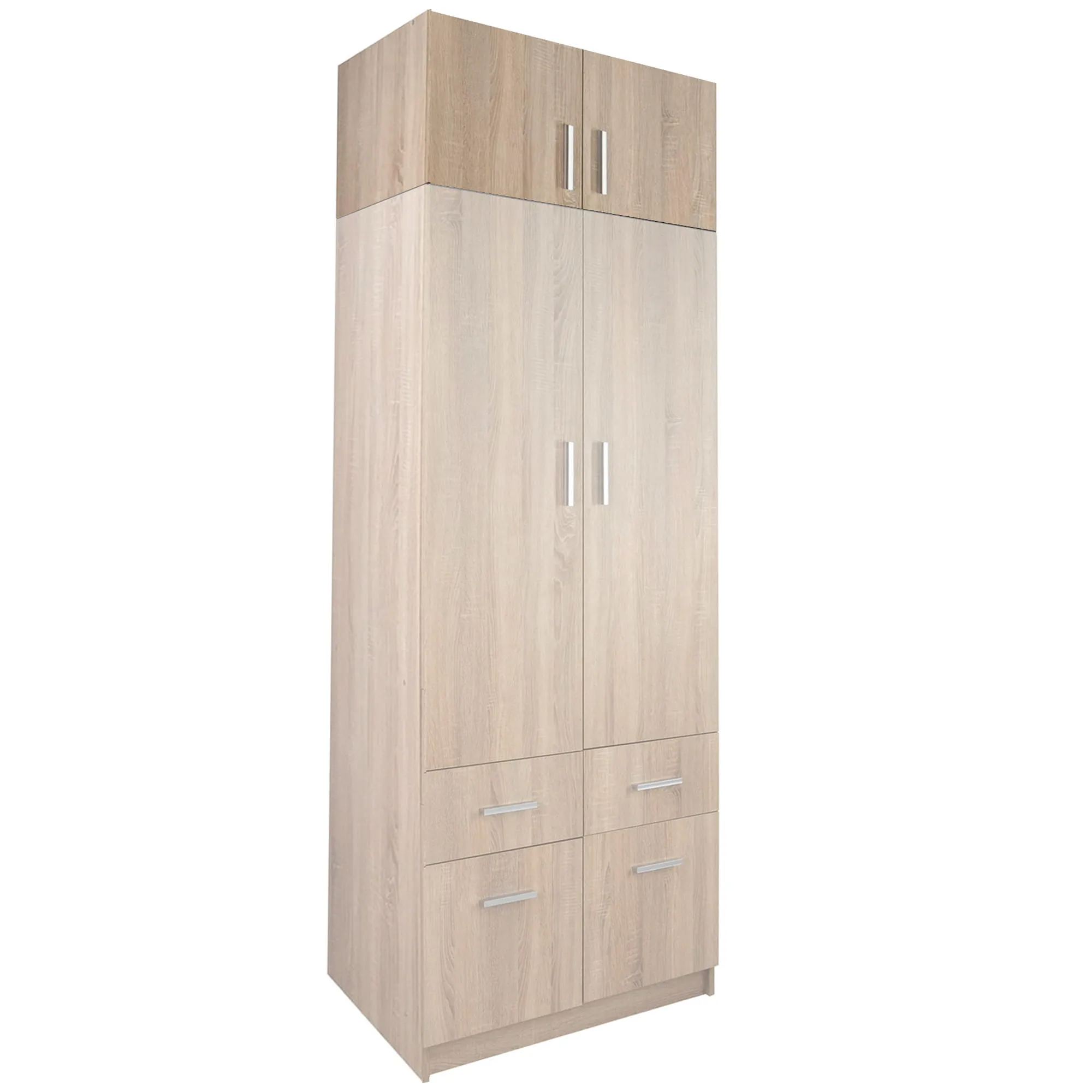 Pojemna nadstawka do szafy Esperanza w kolorze dąb sonoma. Nadstawka to idealne rozwiązanie do wykorzystania przestrzeni nad szafą. Pakowne wnętrze ukryte za parą drzwiczek świetnie się przyda na rzeczy, po które sięgasz okazjonalnie i które nie są Ci potrzebne podczas codziennego użytku, ale również potrzebują swojego miejsca. Kolejnym atutem tego modelu jest idealne dopasowanie pod każdym względem do szafy Esperanza. Korzystając z takiego rozwiązania zyskujesz nie tylko dodatkową przestrzeń, ale także spójną i harmonijną aranżację.
