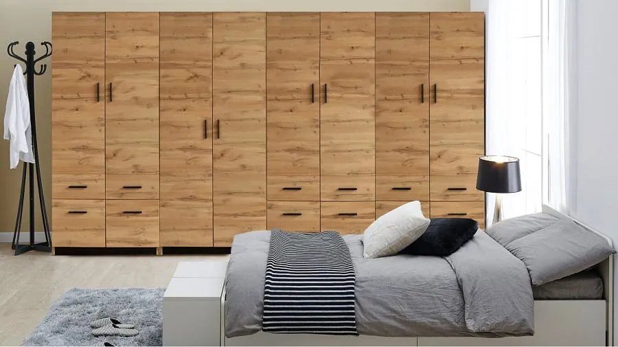 Kolekcja Esperanza to meble do Twojej sypialni lub garderoby. Esperanza to meble w kolorze: dąb wotan, dąb sonoma lub biel alpejska. Meble o geometrycznych kształtach wykonano z płyty, wkomponowano w nie nowoczesne uchwyty w kolorze srebrnym lub czarnym. Opcjonalne nadstawki do szaf pozwalają na wykorzystanie przestrzeni. Poręczne szuflady, półki czy drążki na ubrania pozwolą na przechowywanie dużej ilości garderoby.