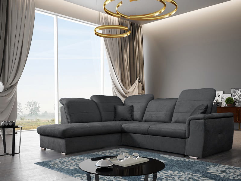 Narożnik z funkcją spania RPBER zapewnia komfortowy wypoczynek dzięki przyjemnym w dotyku materiałom. Funkcja spania i świetny projekt czynią go uniwersalnym meblem pasującym do niemal każdego wnętrza.