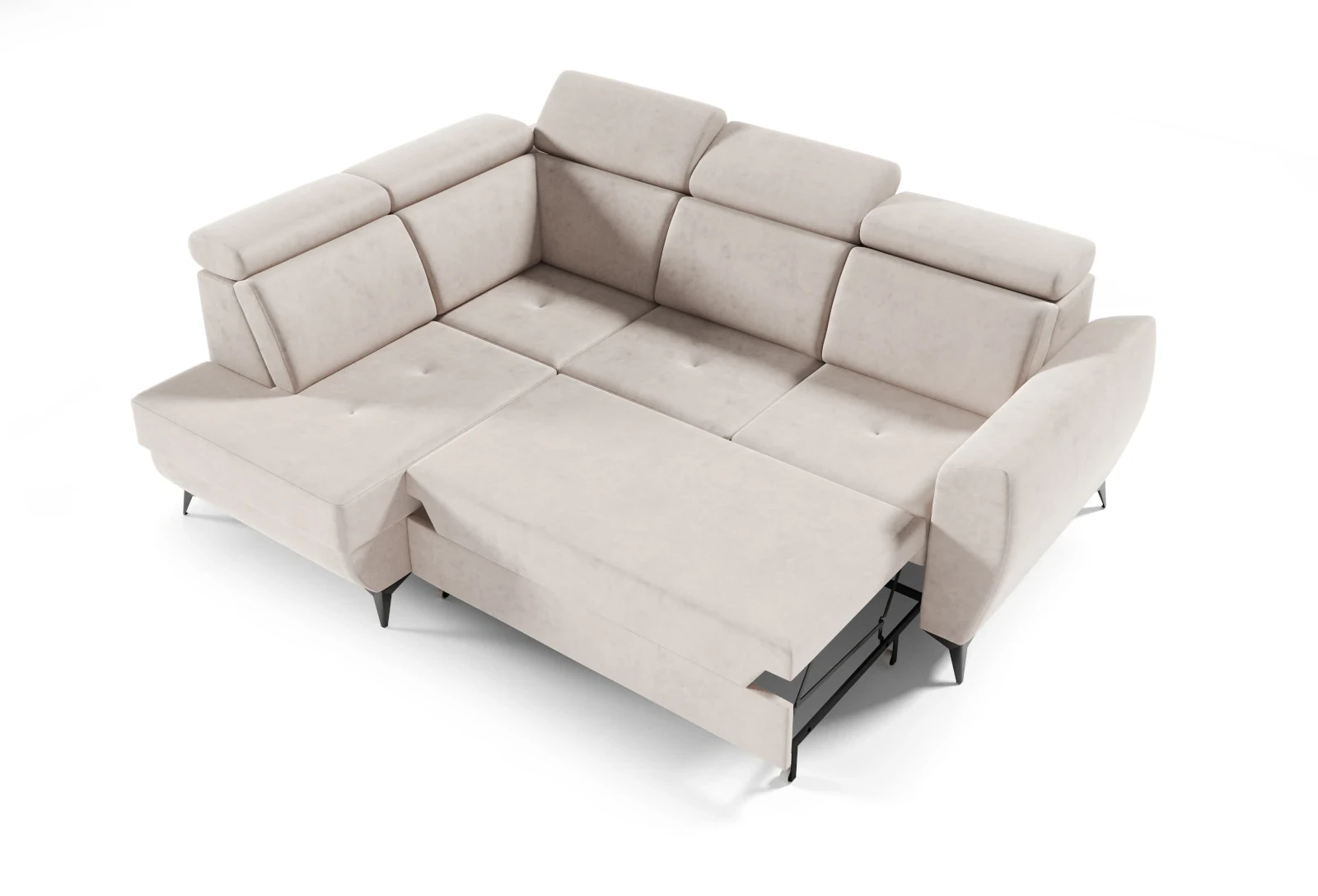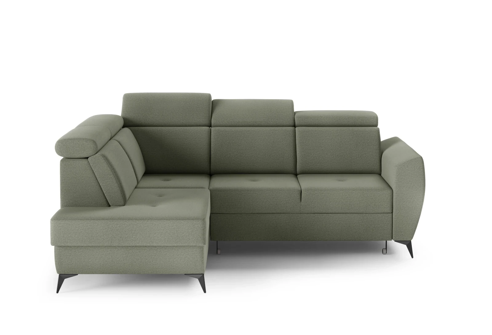 Narożnik lewy DANTE II z funkcją spania 266x204cm zgaszona zieleń