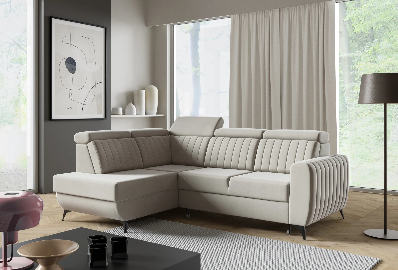 Narożnik lewy ELARA II z funkcją spania 268x204cm beż