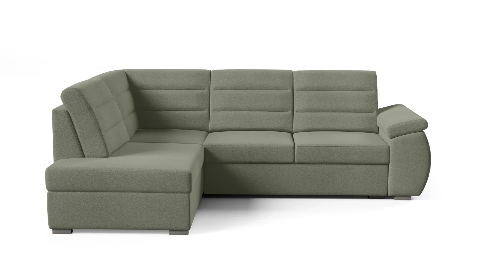 Narożnik Noble w odcieniu delikatnej, oliwkowej zieleni to mebel, który wnosi do wnętrza spokój, harmonię i odrobinę natury. Jego subtelny, zgaszony kolor doskonale komponuje się z różnorodnymi stylami aranżacyjnymi, od nowoczesnych po bardziej klasyczne, wprowadzając elegancki akcent do każdego wnętrza.