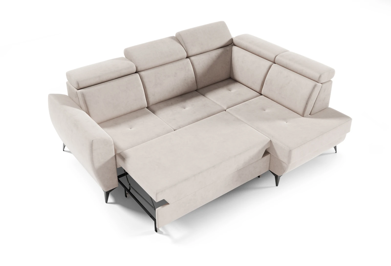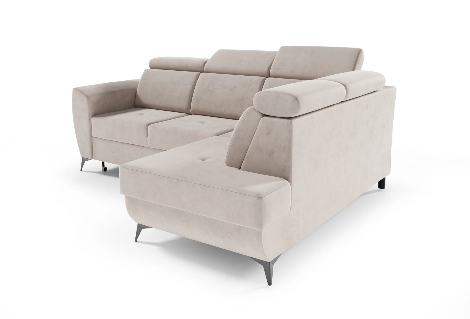 Zaprojektowany z myślą o maksymalnej wygodzie, Dante II oferuje przestronność i komfort, których szukasz po długim dniu. Regulowane zagłówki umożliwiają dostosowanie narożnika do Twoich indywidualnych potrzeb, zapewniając odpowiednie wsparcie dla karku i głowy. Dodatkowo, wyjątkowy kształt podłokietników i nogi w metalicznym odcieniu nadają meblowi nowoczesny i lekki wygląd, a jednocześnie zapewniają stabilność i wytrzymałość.