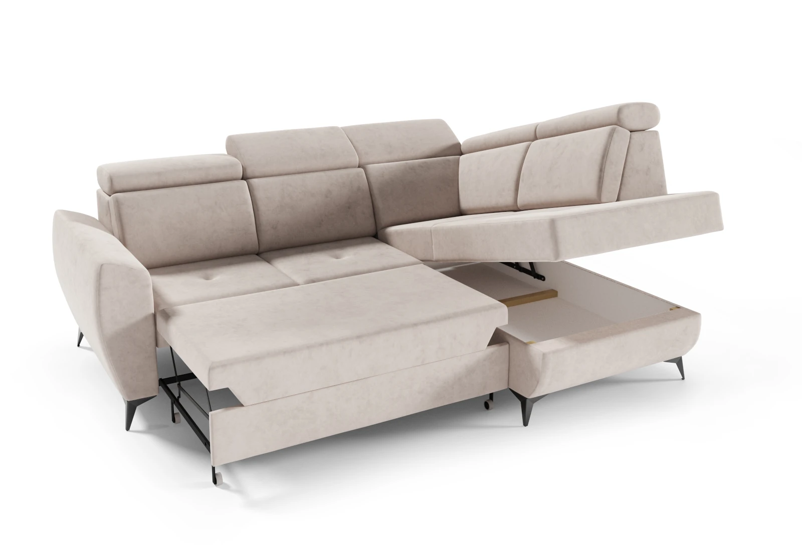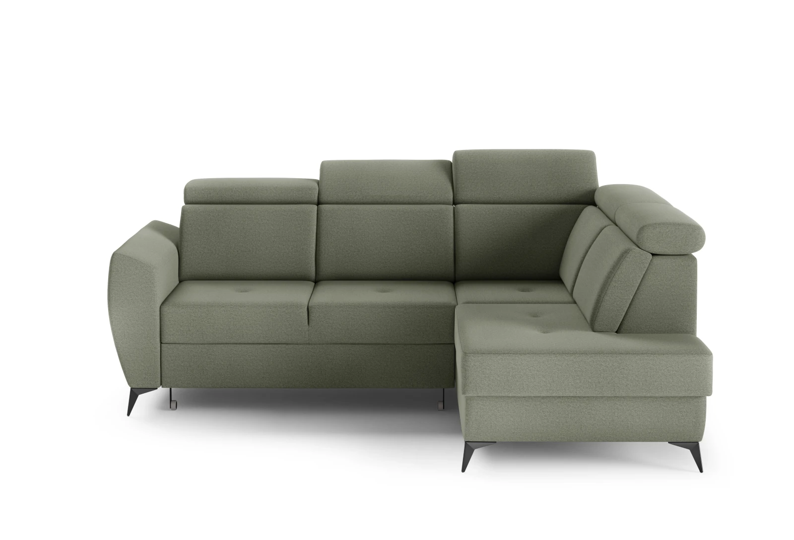 Narożnik prawy DANTE II z funkcją spania 266x204cm zgaszona zieleń