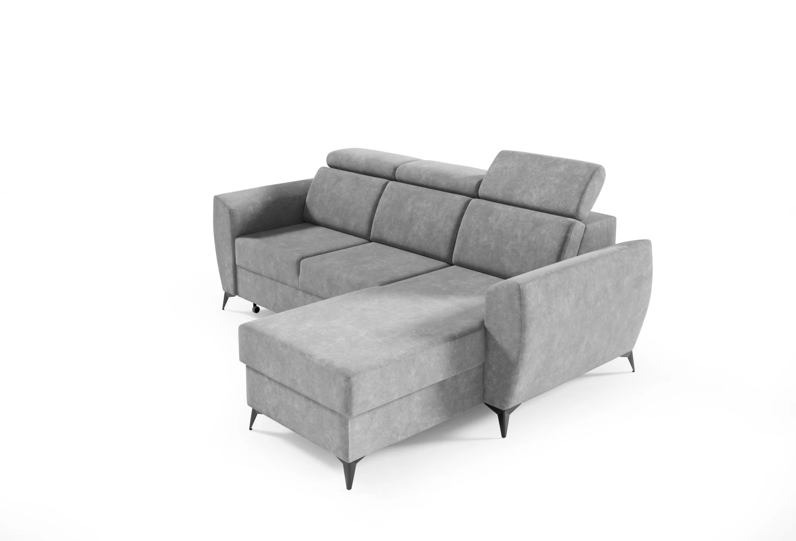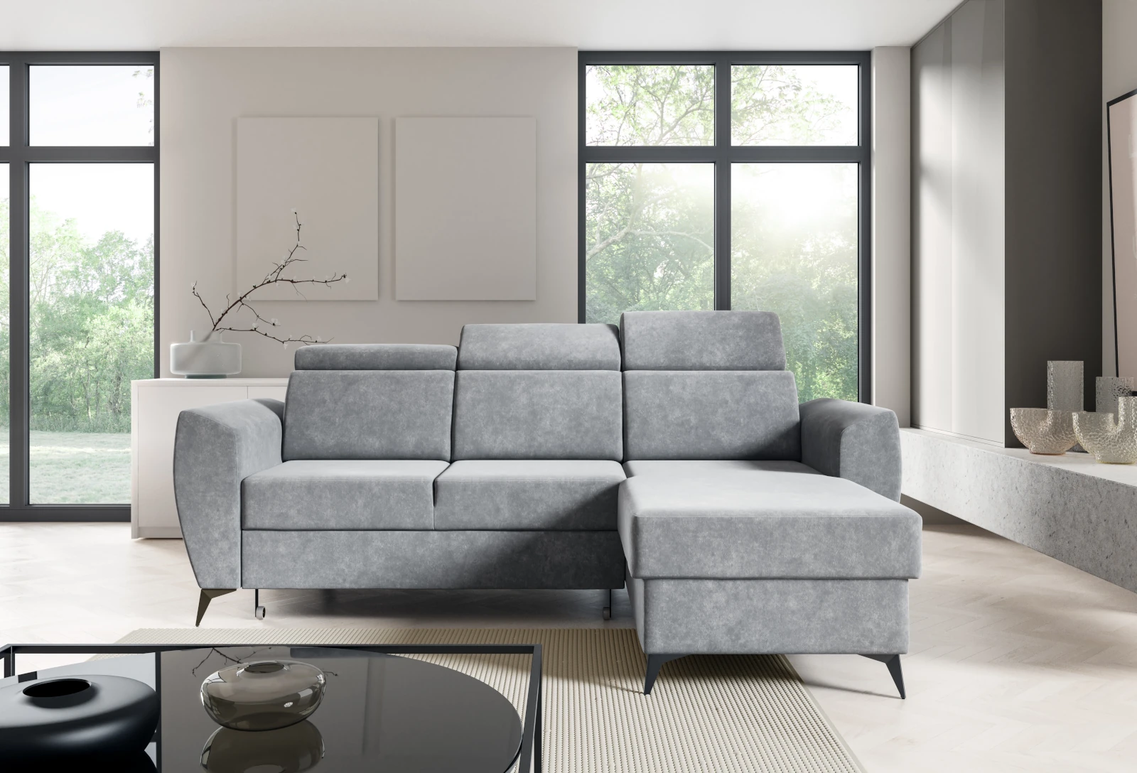 Narożnik Dante I to propozycja, która idealnie łączy nowoczesny styl z niezrównaną funkcjonalnością. Jego delikatny, zgaszony zielony kolor to prawdziwa perełka w każdym wnętrzu, wprowadzając do przestrzeni spokojną, relaksującą atmosferę. To mebel, który doskonale wpisuje się w trend naturalnych, stonowanych barw, sprawiając, że pokój staje się bardziej przytulny i pełen harmonii.