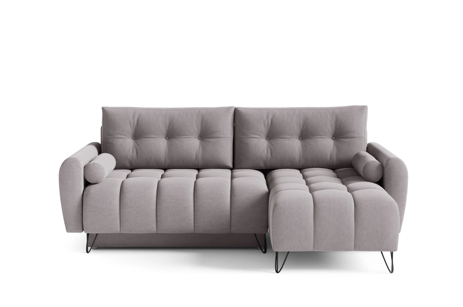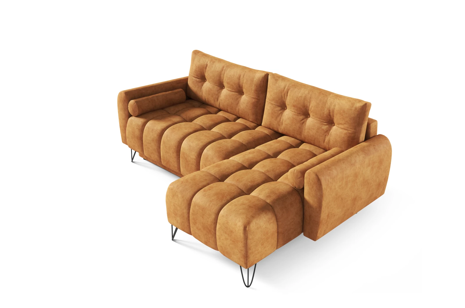 Narożnik Sorella Mini wyróżnia się wyjątkowym komfortem i elegancją, a jego funkcjonalność pozwala na wygodny relaks i odpoczynek. Przeszycia na oparciu oraz subtelne, zaokrąglone boki nadają mu charakteru, a smukłe nóżki w kształcie drutów zapewniają lekkość wizualną, dzięki czemu wnętrze zyskuje przestronność.