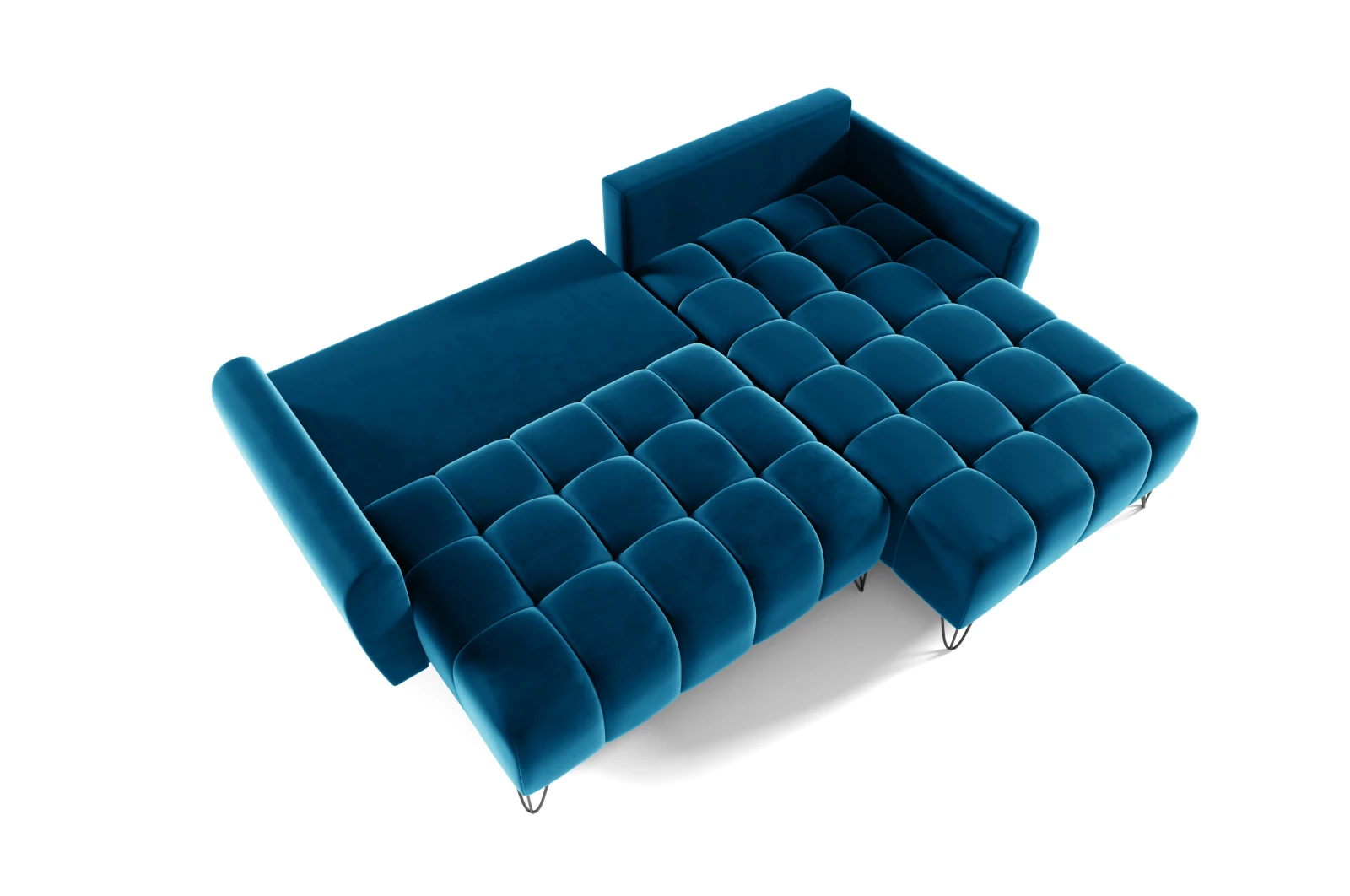 Narożnik Sorella w odcieniu głębokiego, szlachetnego błękitu to wybór dla osób, które pragną, aby ich wnętrze zyskało niepowtarzalny charakter i elegancję. Jego aksamitna tapicerka emanuje luksusem, a jednocześnie przyciąga wzrok intensywnym, ale subtelnym kolorem. To narożnik, który z łatwością staje się centralnym punktem każdego pokoju, nadając przestrzeni wyjątkowego, ciepłego akcentu.