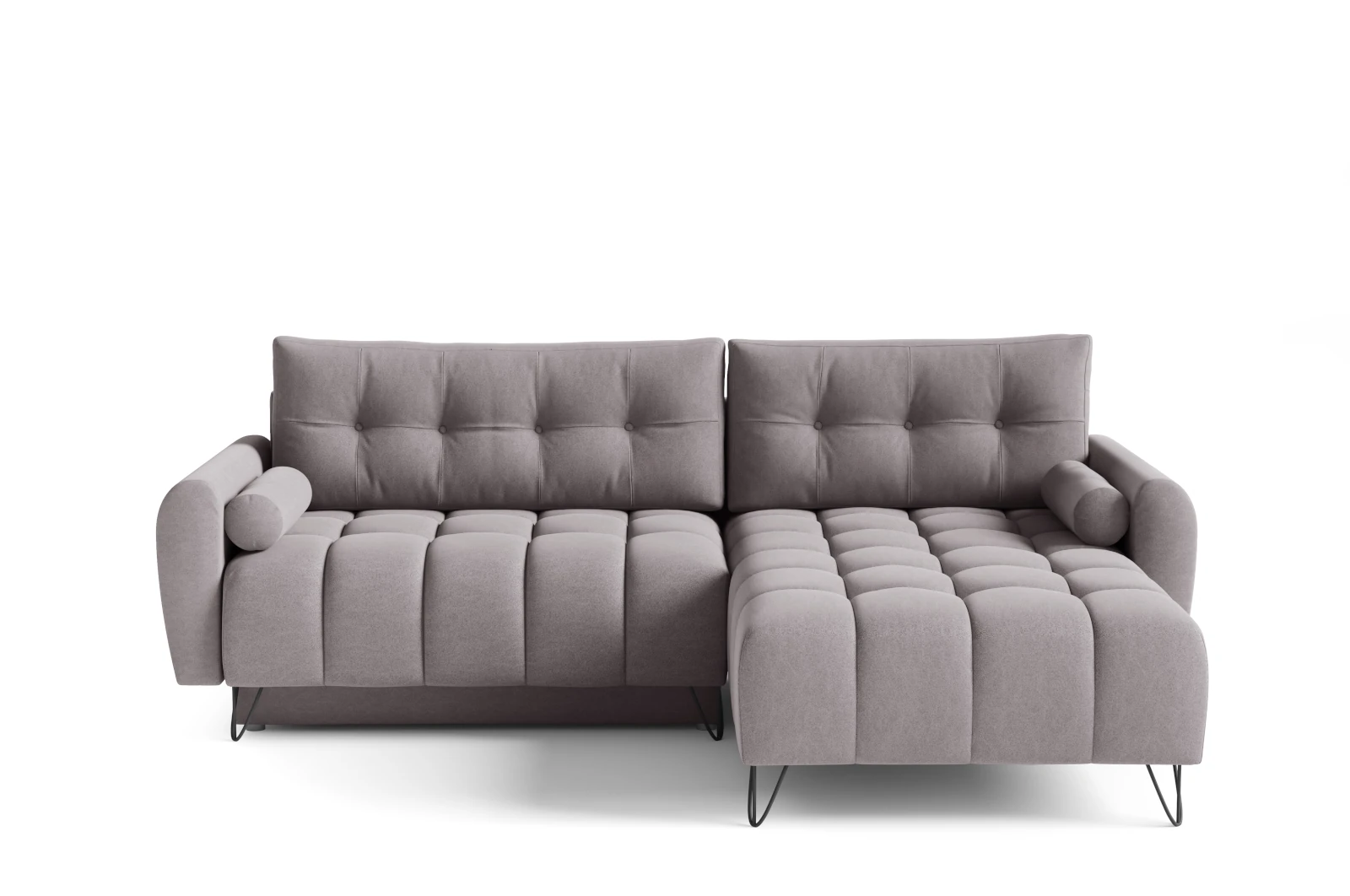 Narożnik Sorella w odcieniu delikatnego, stonowanego popielu to doskonały wybór dla osób, które pragną wprowadzić do swojego wnętrza elegancję i subtelny luksus. Jego minimalistyczna forma, połączona z efektownymi przeszyciami na siedzisku i oparciu, tworzy mebel, który przyciąga wzrok i wnosi do przestrzeni nowoczesny charakter. Smukłe metalowe nóżki w kształcie drutów dodają lekkości i nadają całości wyjątkowej finezji.
