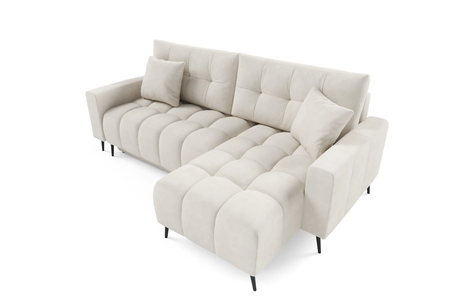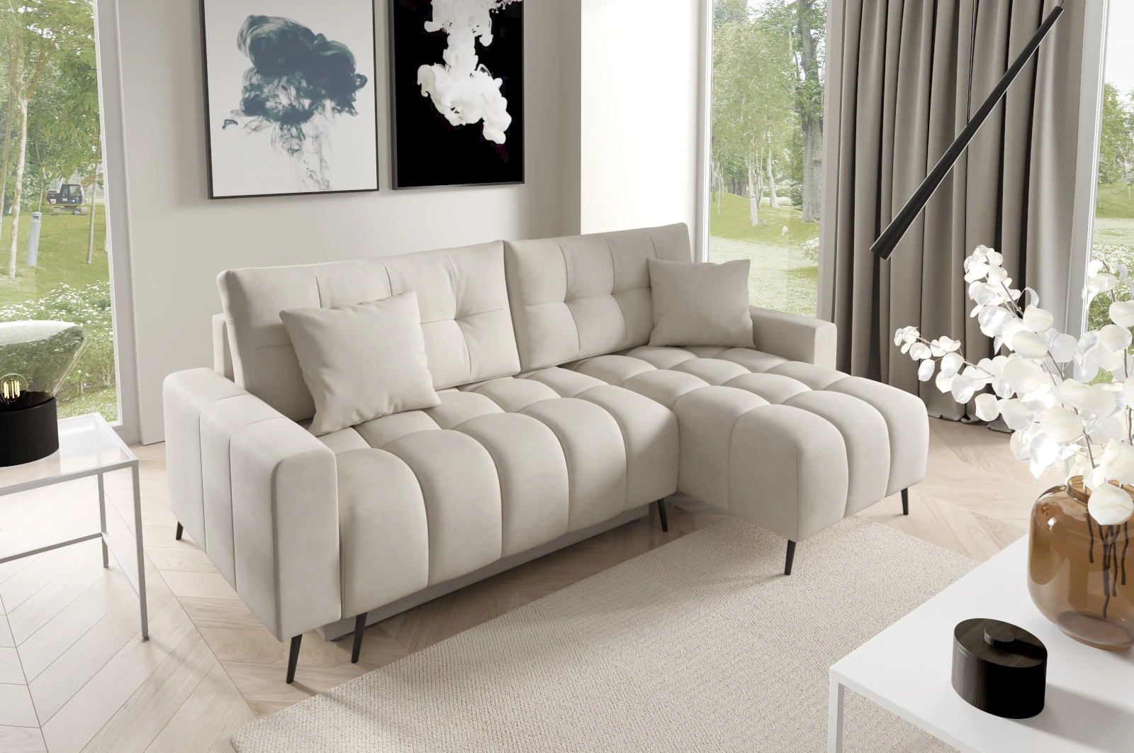 Velino – Narożnik, który łączy nowoczesność z komfortem, zachwyca zarówno wyglądem, jak i funkcjonalnością. Wykonany z wyjątkową precyzją, jego elegancka linia, miękkie, subtelne wykończenie oraz delikatna kolorystyka w odcieniu kremowej bieli tworzą atmosferę lekkości i przestronności w każdym wnętrzu. Idealny wybór dla tych, którzy cenią prostotę w eleganckim wydaniu.
