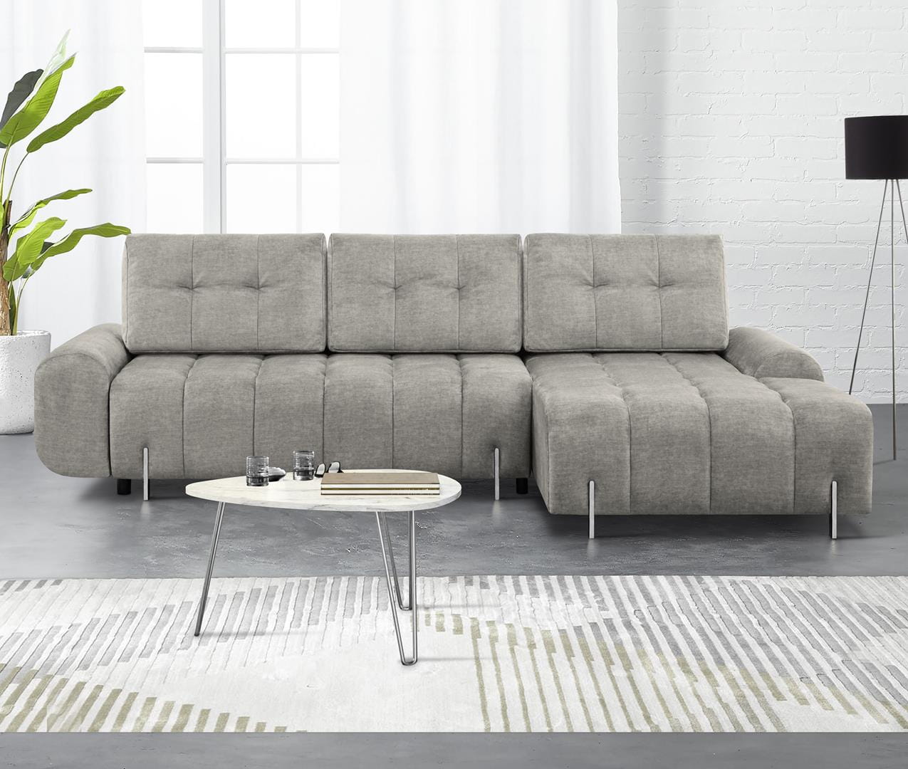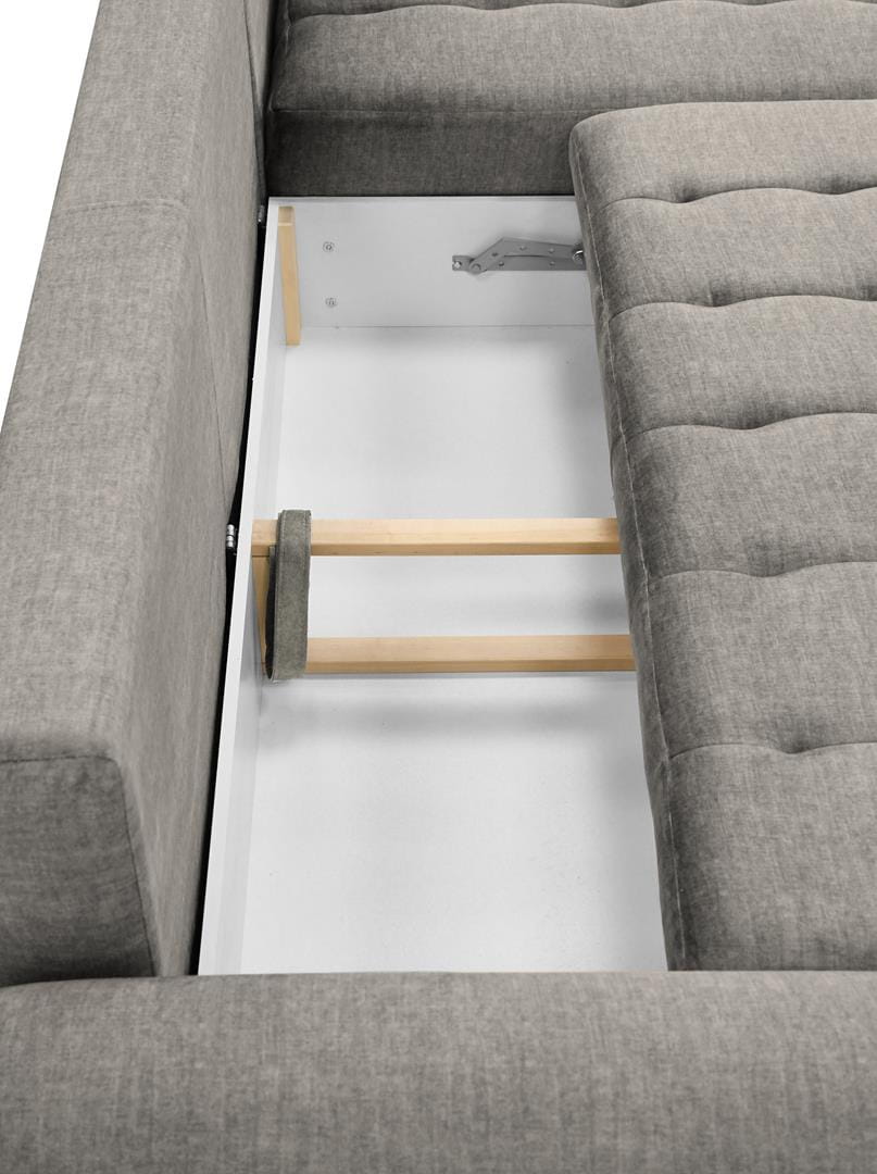 By rozłożyć narożnik wystarczy wysunąć stelaż z pod siedziska i pociągnąć materac za pomocą uchwytu. Mebel nie wymaga odsuwania od ściany.