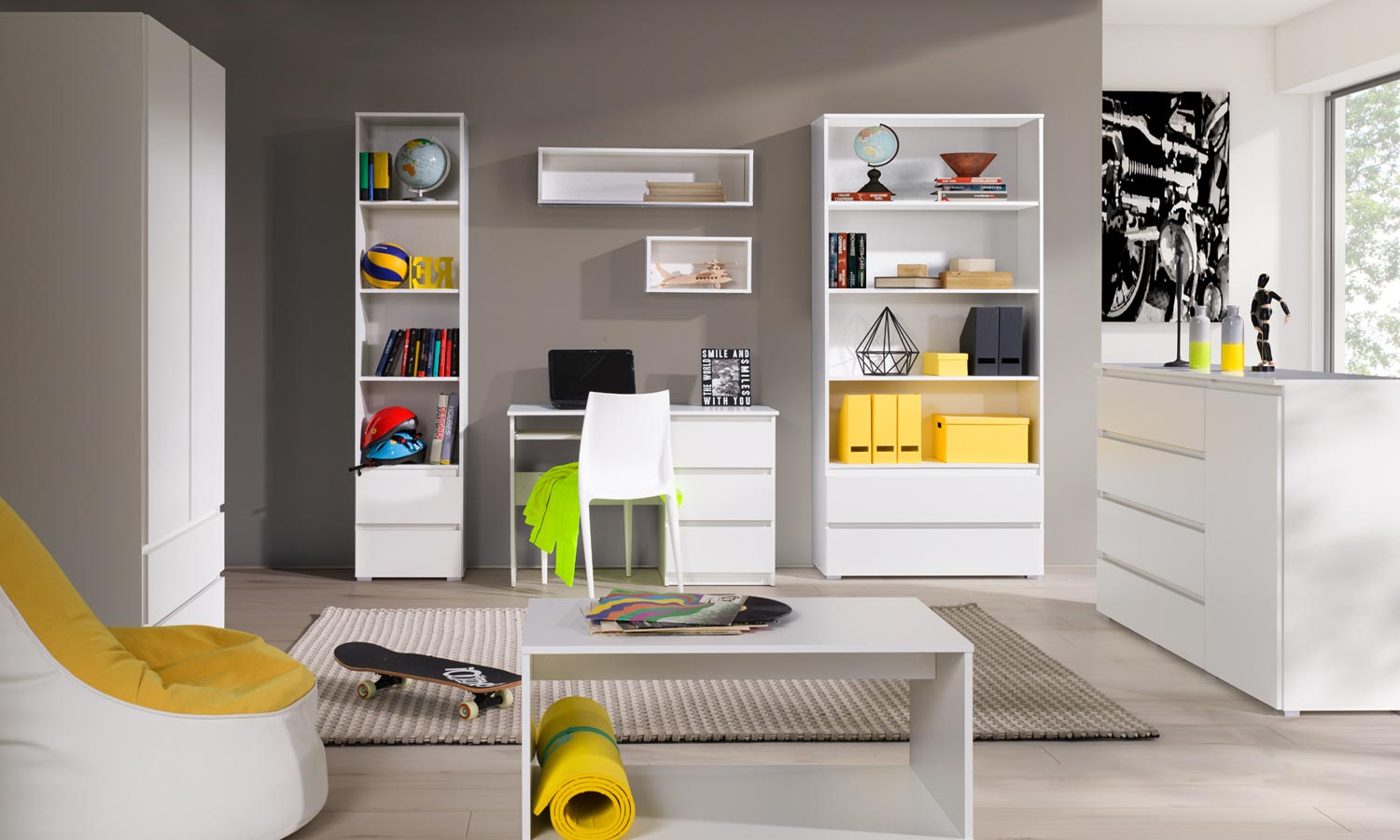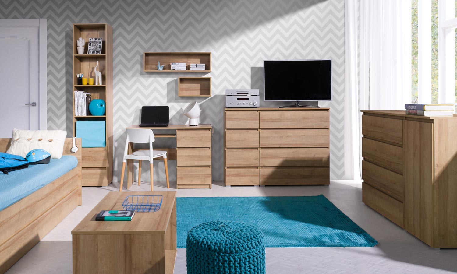 Prosta i nowoczesna półka z obramowaniem. Półka o długości 92 cm. Długa półka idealna w zestawieniu z meblami z kolekcji MEXO . Kolekcja MEXO to proste nowoczesne meble. Meble z tej kolekcji odznaczają się prostą bez uchwytową ergonomią bryły. Korpus i fronty wykonane z płyty mdf w tym samym odcieniu. Kolekcja z wyborem kolorystycznym mebli. Do wyboru trzy kolory: biały, dąb sonoma o jasnym zabarwieniu drewna oraz w kolorze dąb riviera w ciemniejszym odcieniu usłojenia drewna. Meble posiadają szeroki wybór asortymentu spośród różnych brył. Meble są pakowne, funkcjonalne i cechuje je ponadczasowa nowoczesność dzięki prostej budowie brył. Zestaw MEXO w kolorystyce czystej bieli będzie idealnie komponował się w modernistycznych i skandynawskich zestawieniach aranżacyjnych. Białe bez uchwytowe meble to ponadczasowe rozwiązanie zarówno do pokojów młodzieżowych, dziewczęcych, sypialni i pokojów dziennych. Kolekcja MEXO w odcieniach drewna to idealne rozwiązanie dla osób ceniących design w oparciu o naturalne barwy dębu. Nowoczesne i proste meble do pokoju młodzieżowego zarówno dziewczęcego i chłopięcego.