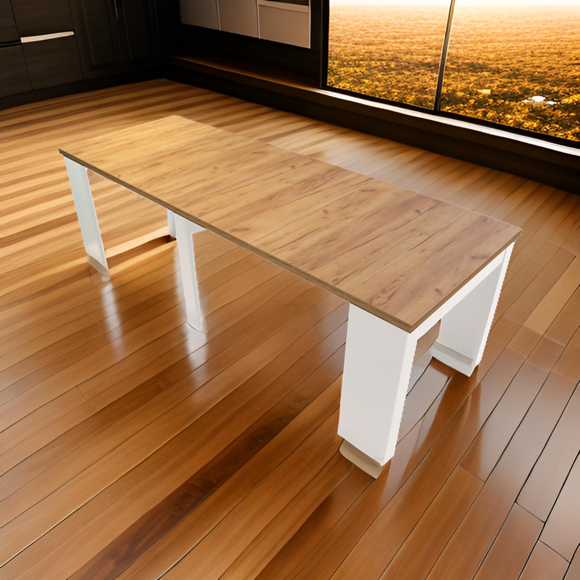 Stół Rozkładany KORDIAN 52-302x90 cm - Dąb Craft Złoty, Białe Nogi