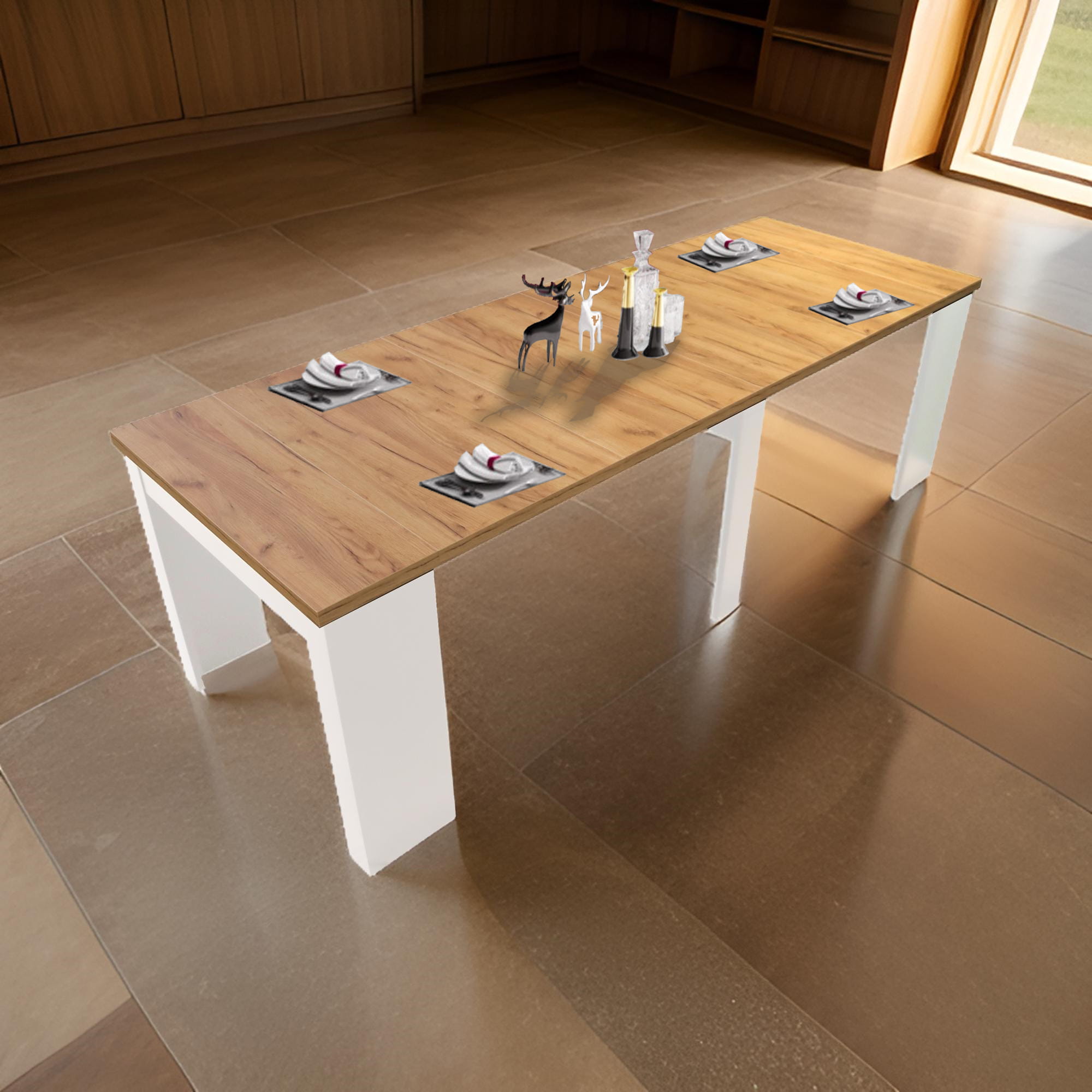 Funkcjonalność stołu KORDIAN to jego ogromny atut. Możliwość rozłożenia od 52 cm do aż 302 cm sprawia, że mebel ten idealnie sprawdzi się zarówno jako kompaktowa konsola, jak i duży, wygodny stół na rodzinne posiłki czy spotkania towarzyskie. Prosty mechanizm rozkładania umożliwia szybkie dostosowanie stołu do Twoich potrzeb, zapewniając maksimum wygody i komfortu.