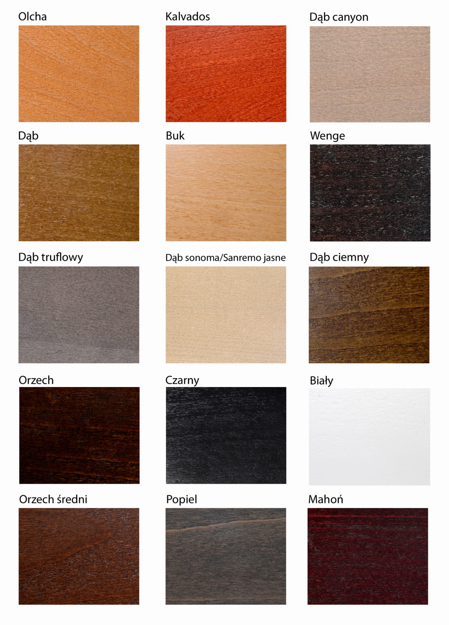 Lakier | Olcha | Sonoma | Kalwados | Dąb Rustikal |