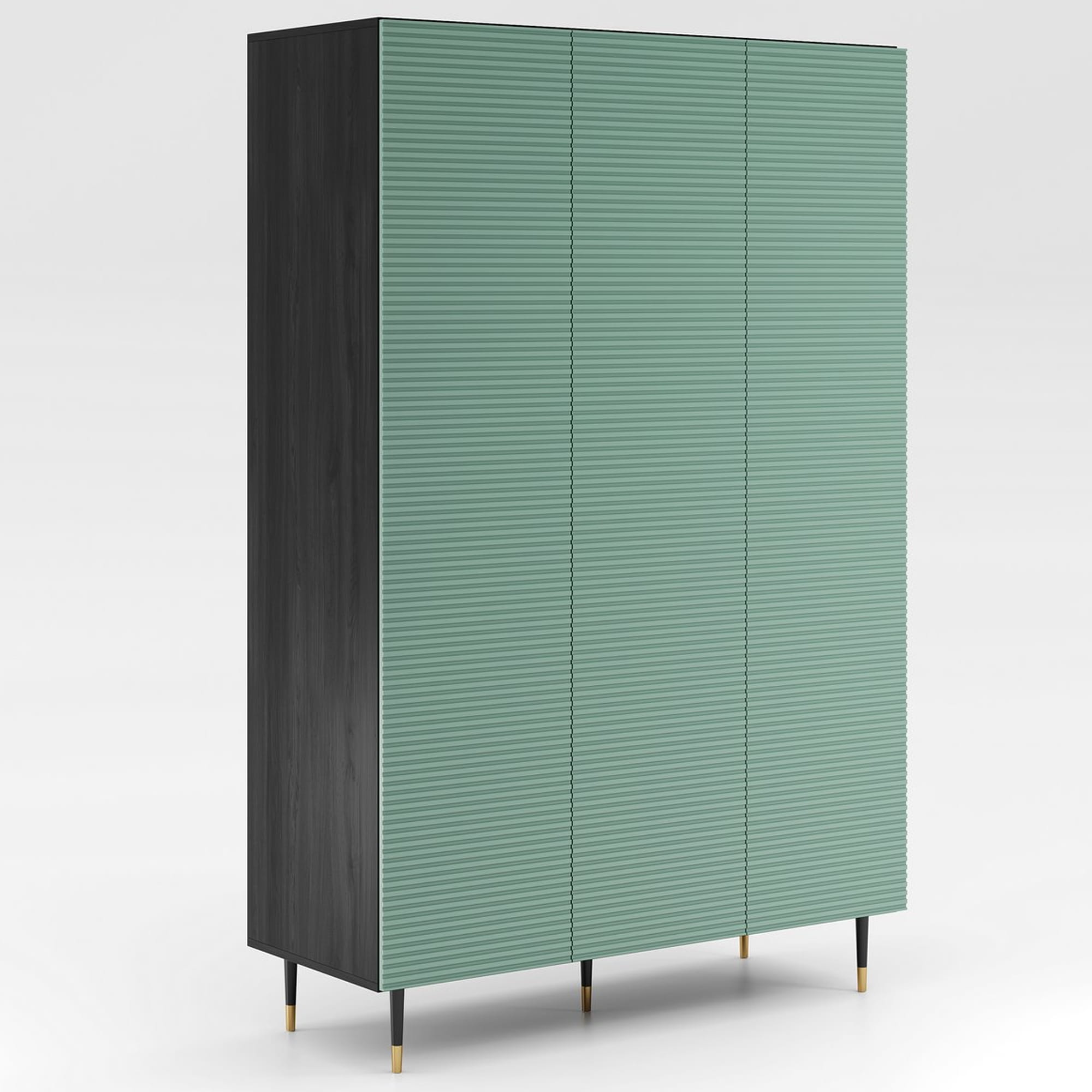 Szafa trzydrzwiowa MIXTURIAL 135x206 cm - ryflowane fronty pistacjowa zieleń, nogi złote