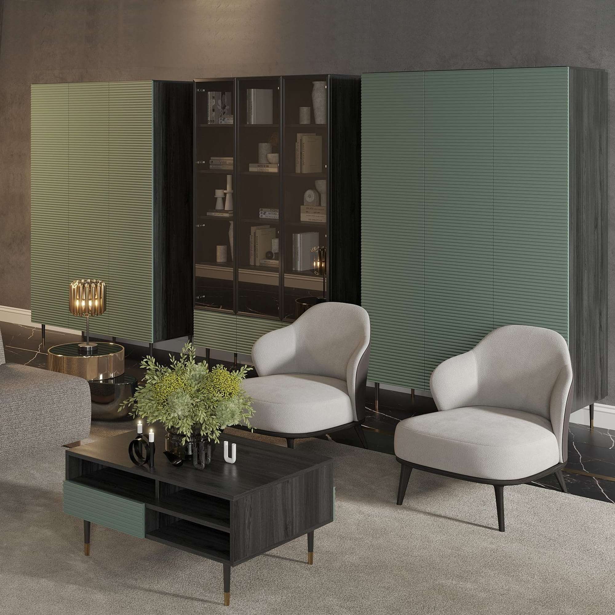 - Nogi: Drewniane nogi z luksusowym złotym wykończeniem, podkreślające nowoczesny design.