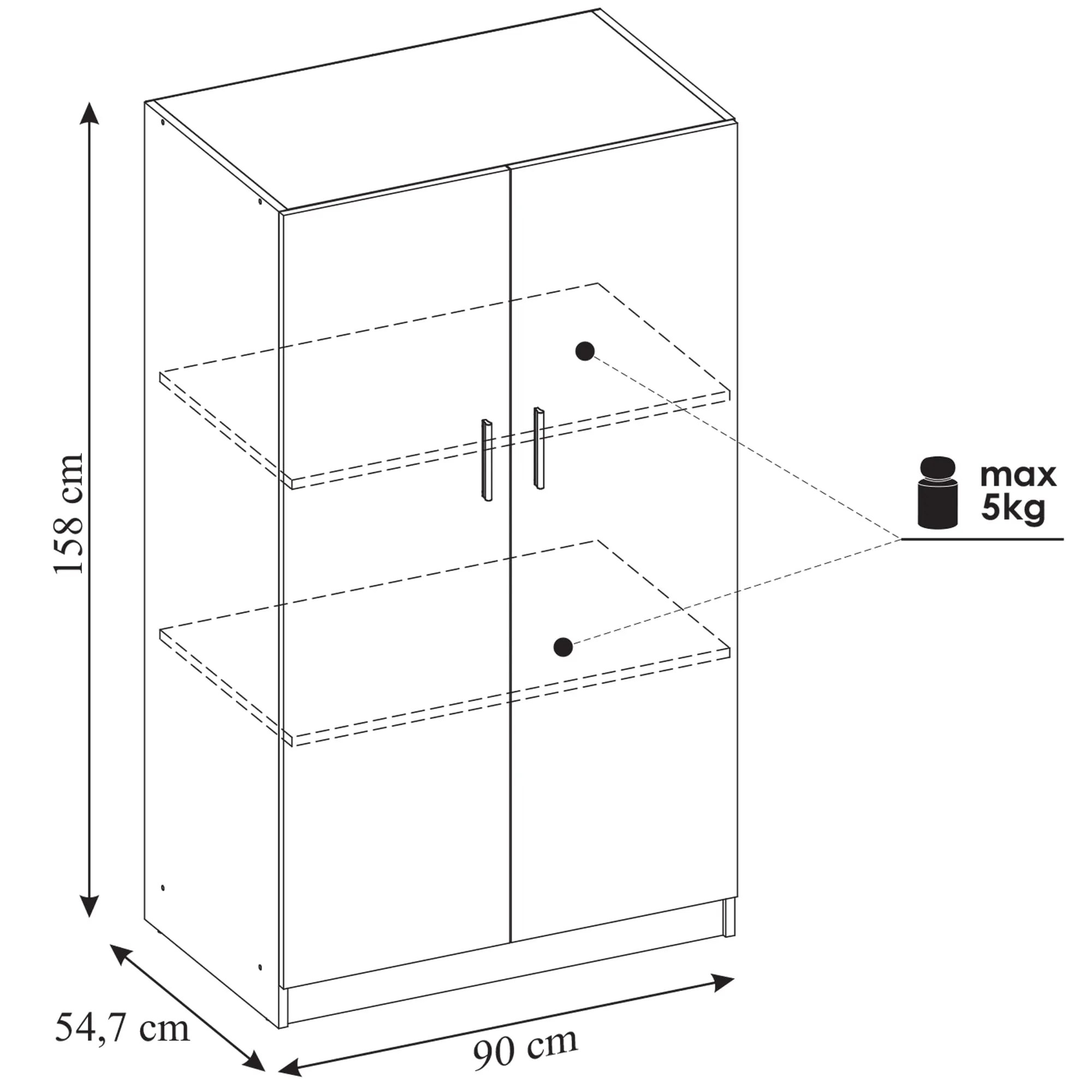 Klasyczna szafka do sypialni, garderoby lub dowolnego innego wnętrza. Szafka z pojemnymi półkami na ubrania lub inne osobiste przedmioty. Pełne drzwiczki wyposażone zostały w proste uchwyty w kolorze czarnym dzięki takiemu zabiegowi szafka z łatwością dopasuje się do wnętrza urządzonego w stylu nowoczesnym i skandynawskim. Uniwersalna stylistyką sprawdzi się w każdym pomieszczeniu domowym jaki i strefie biurowej.