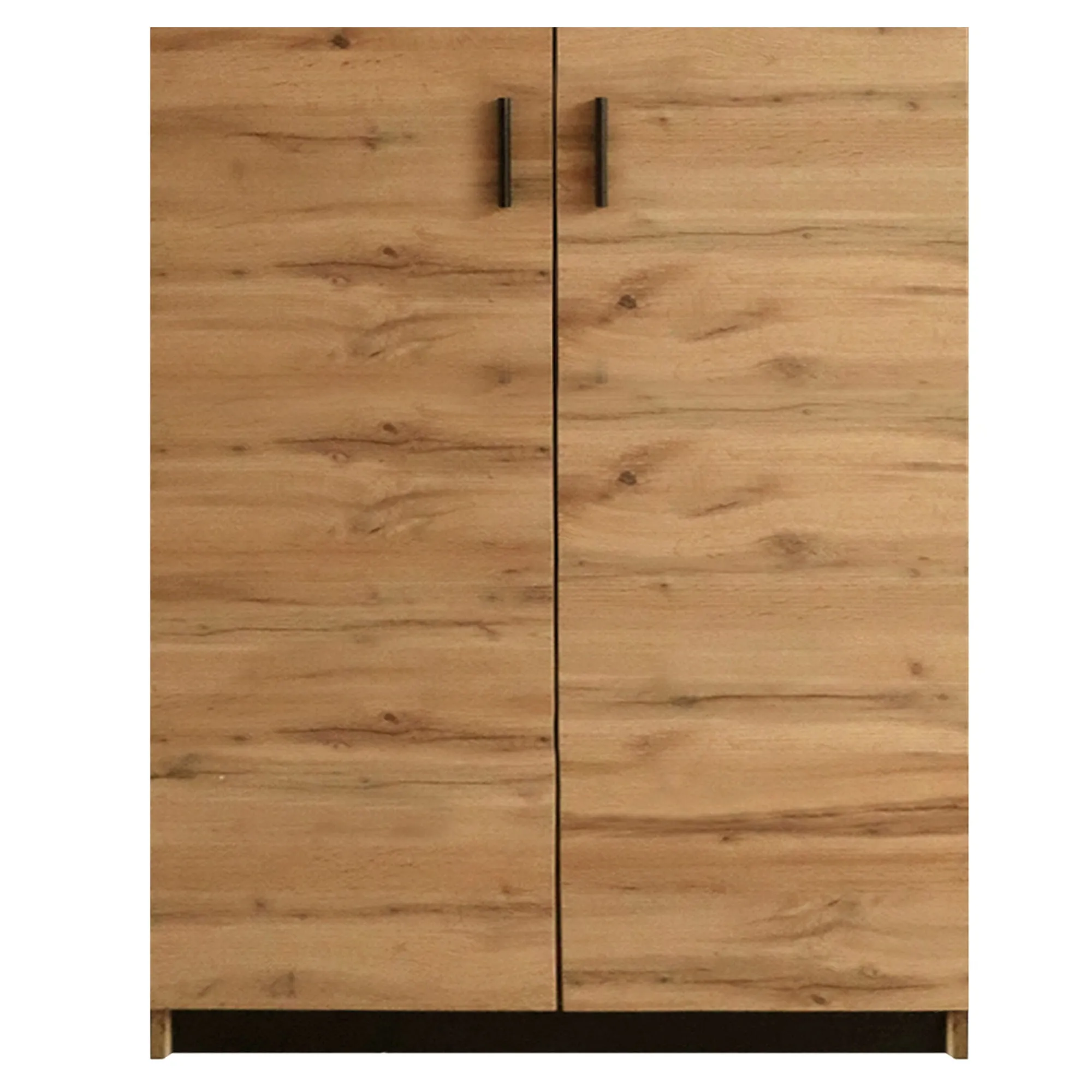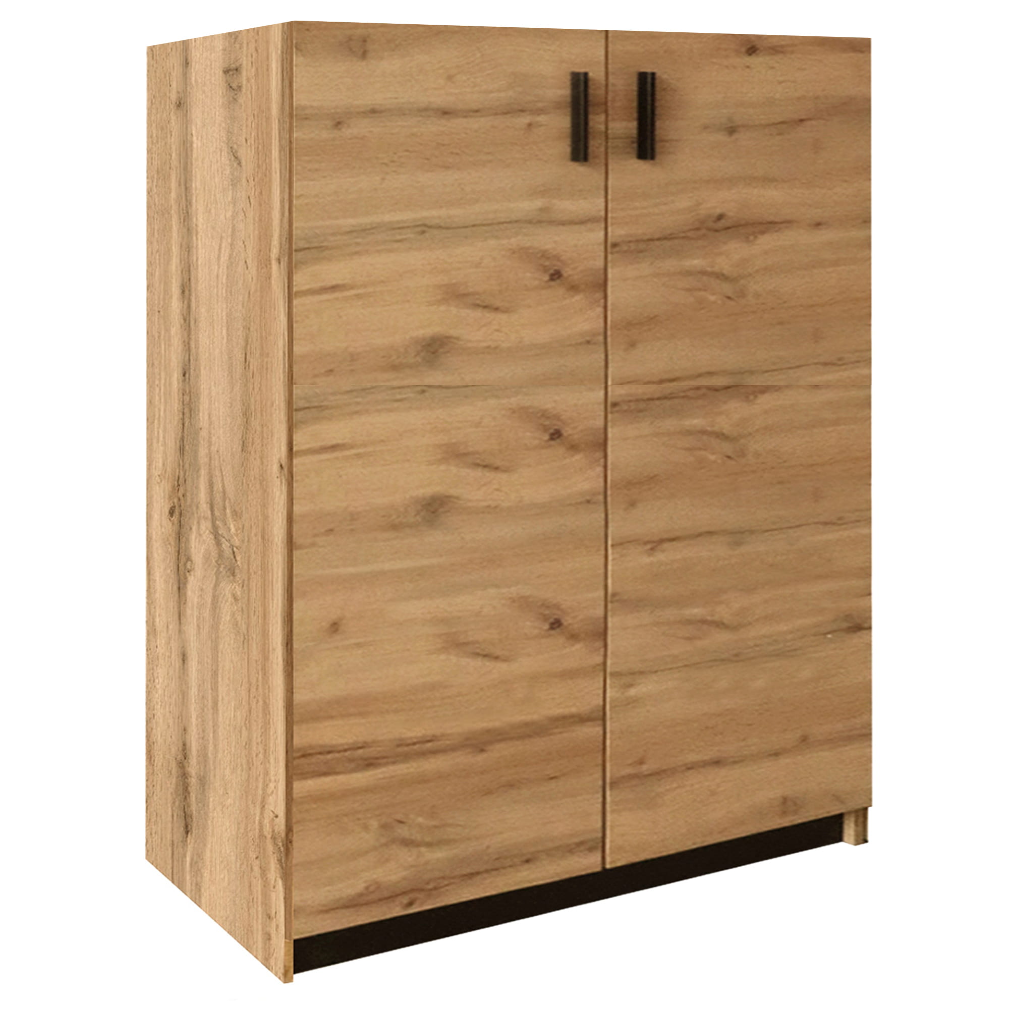 Klasyczna szafka do sypialni, garderoby lub dowolnego innego wnętrza. Szafka z pojemnymi półkami na ubrania lub inne osobiste przedmioty. Pełne drzwiczki wyposażone zostały w proste uchwyty w kolorze czarnym dzięki takiemu zabiegowi szafka z łatwością dopasuje się do wnętrza urządzonego w stylu nowoczesnym i skandynawskim. Uniwersalna stylistyką sprawdzi się w każdym pomieszczeniu domowym jaki i strefie biurowej.