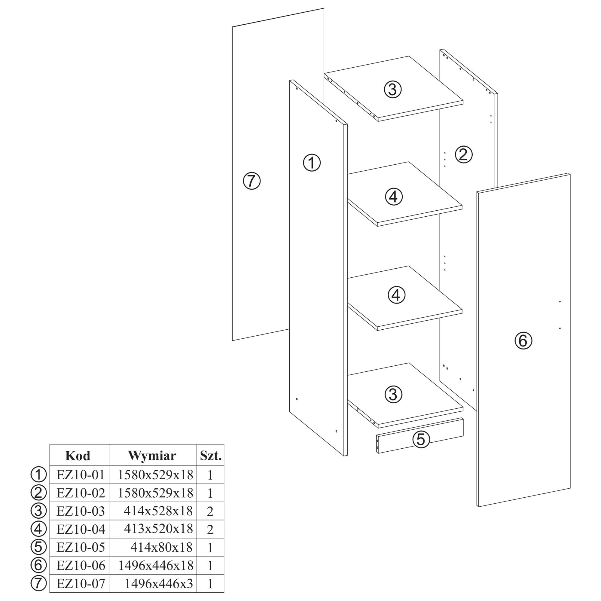 Klasyczna szafka do sypialni, garderoby lub dowolnego innego wnętrza. Szafka z pojemnymi półkami na ubrania lub inne osobiste przedmioty. Pełne drzwiczki wyposażone zostały w proste uchwyty w kolorze aluminium dzięki takiemu zabiegowi szafka z łatwością dopasuje się do wnętrza urządzonego w stylu nowoczesnym i skandynawskim. Uniwersalna stylistyką sprawdzi się w każdym pomieszczeniu domowym jaki i strefie biurowej.