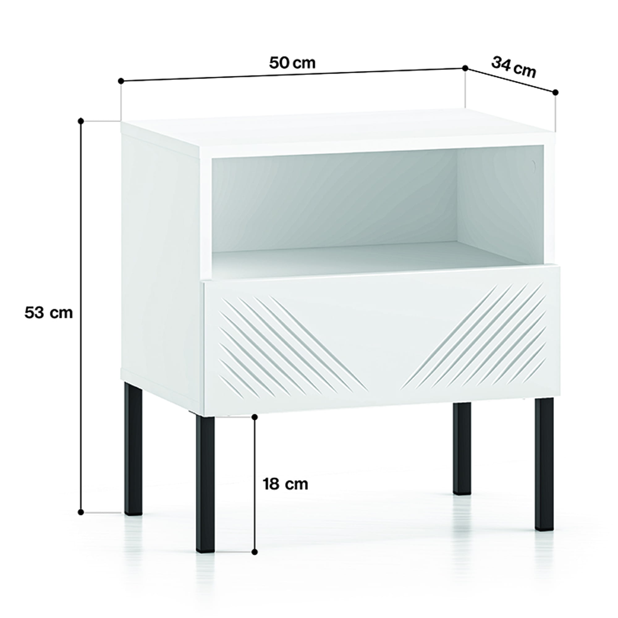 Szafka nocna MALACO 50 cm biała na czarnych nóżkach