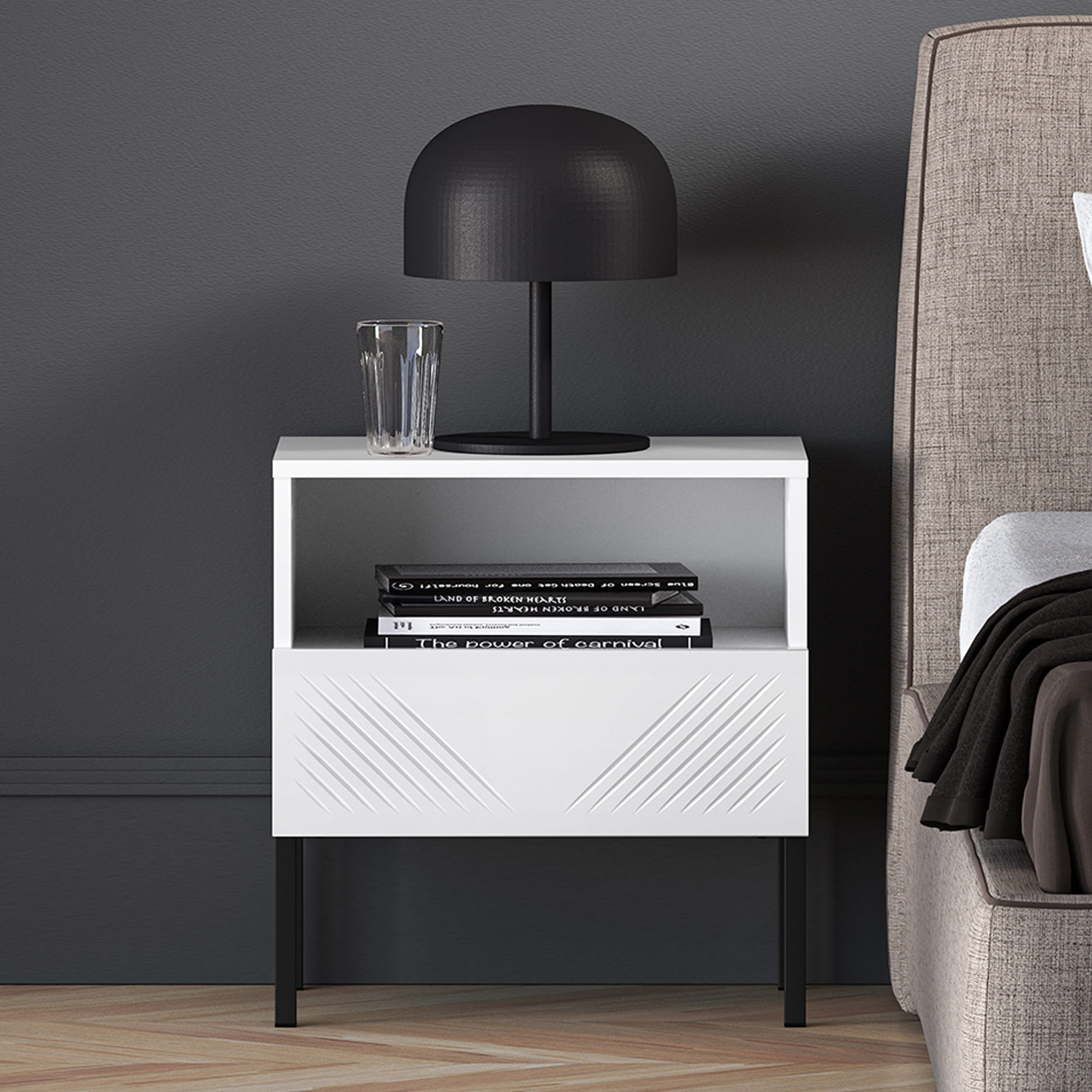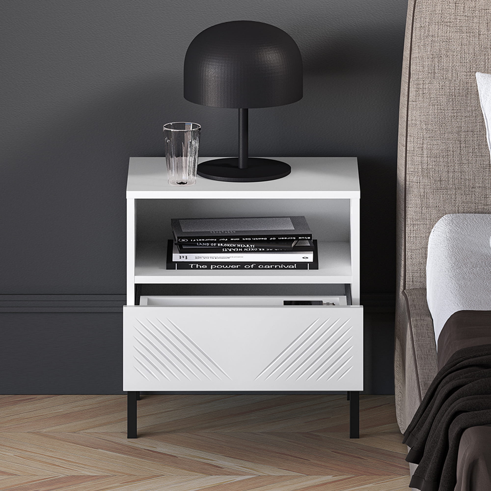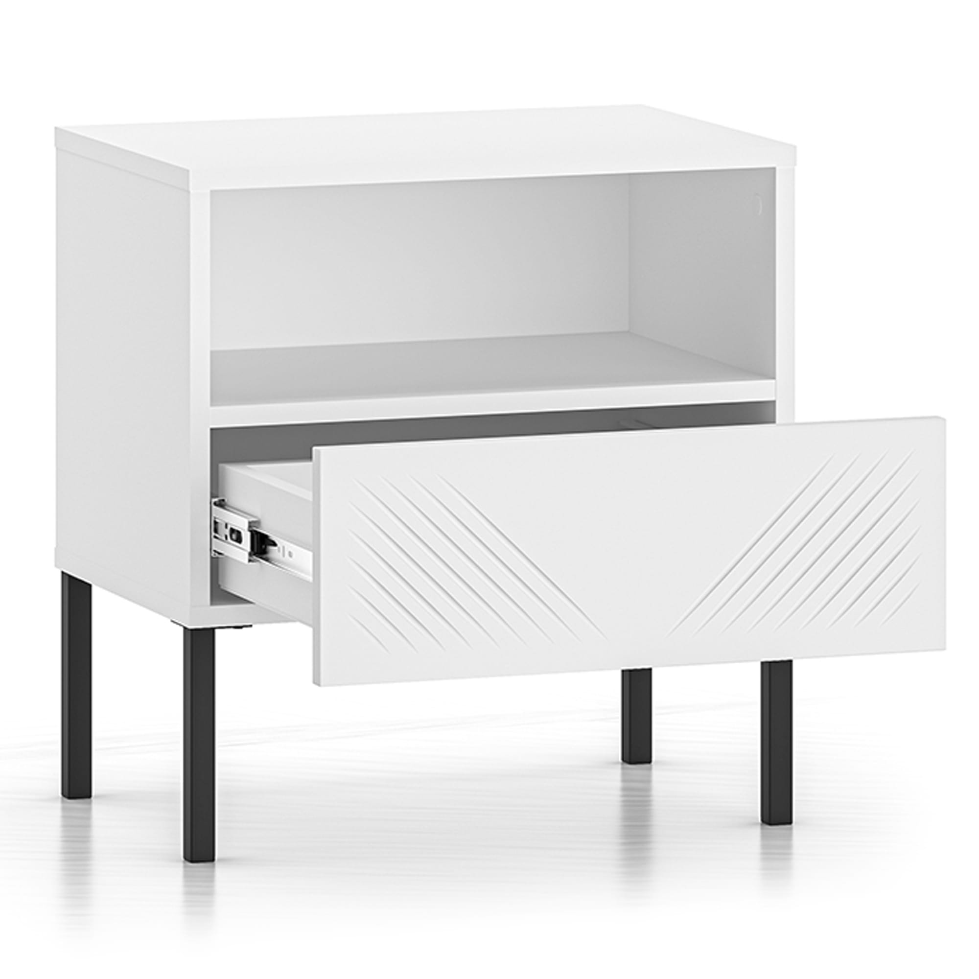 Szafka Nocna MALACO – Biała na Czarnych Nóżkach